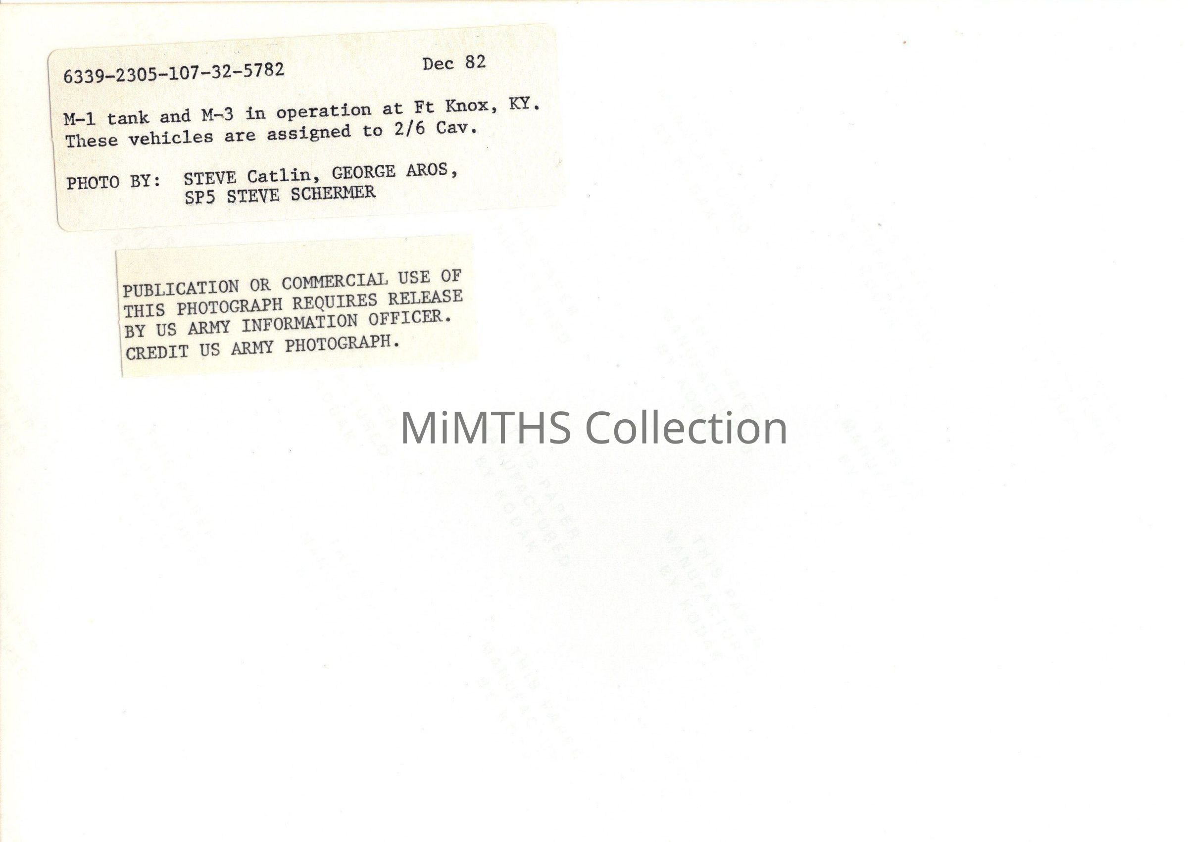 Original photo of an M1 Abrams and an M3 Bradley from 2/6 Cavalry at Ft. Knox. Captioned on backPhotograph Details