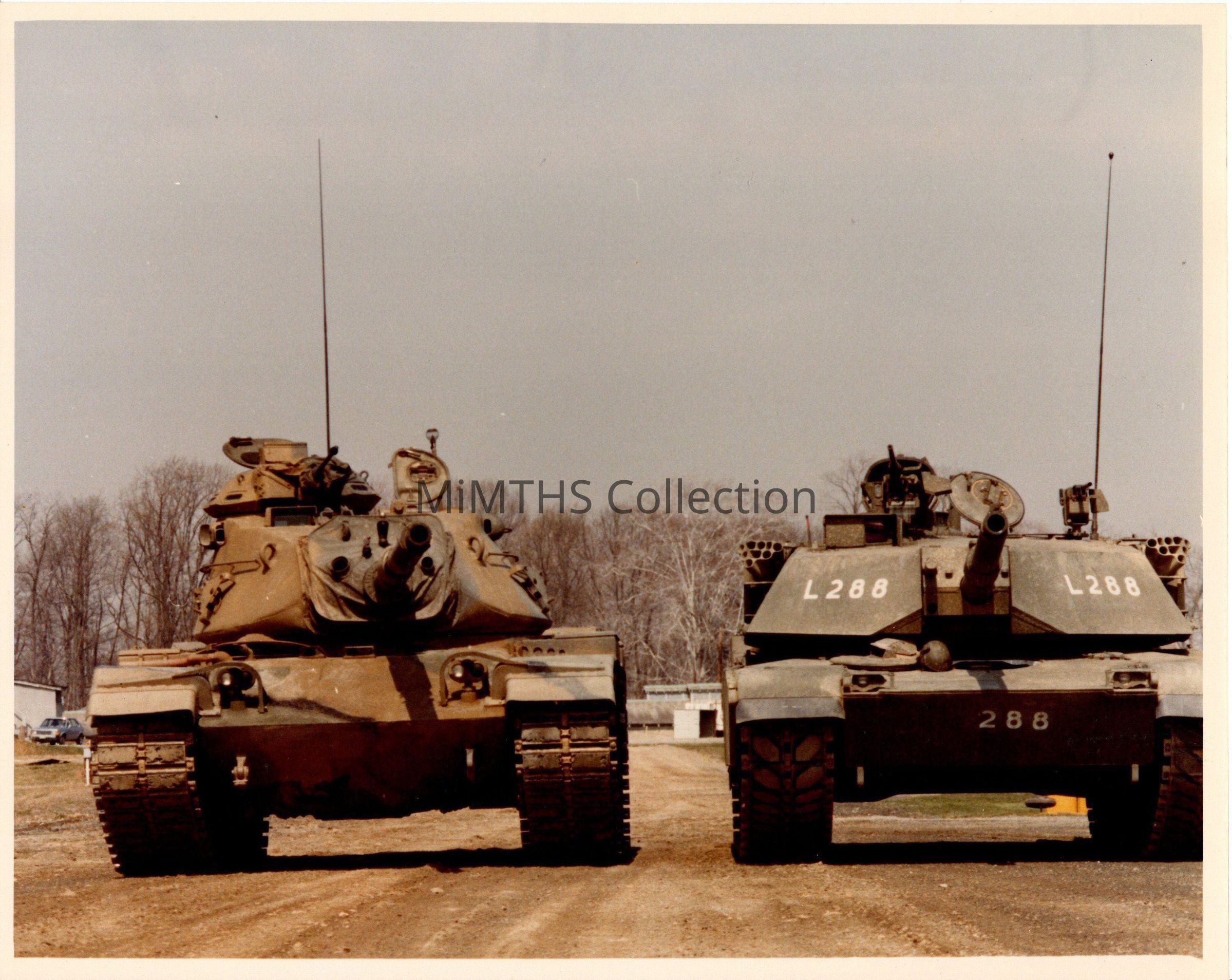 Original photo of an M1 Abrams and an M60 taken at Aberdeen Proving Grounds. Captioned on backPhotograph Details