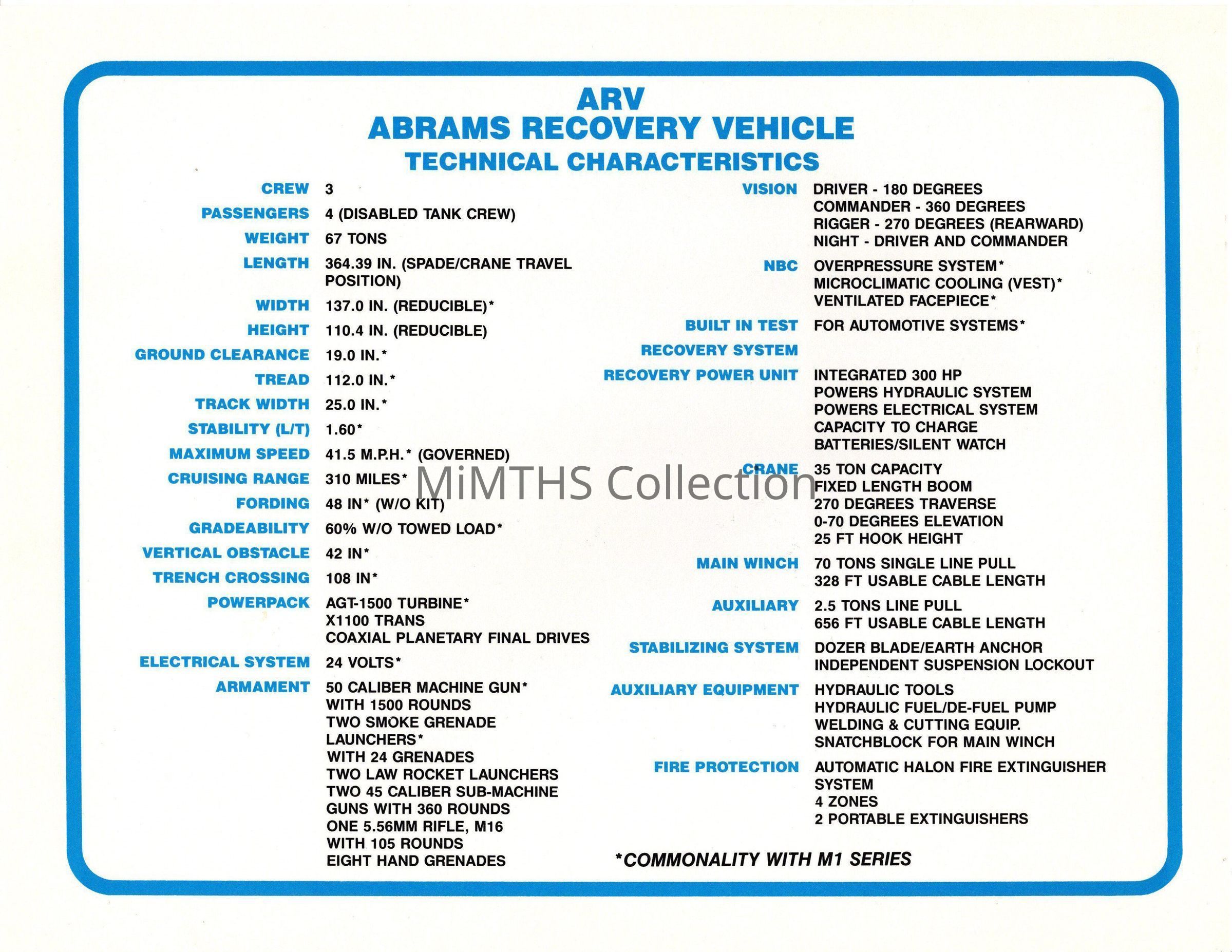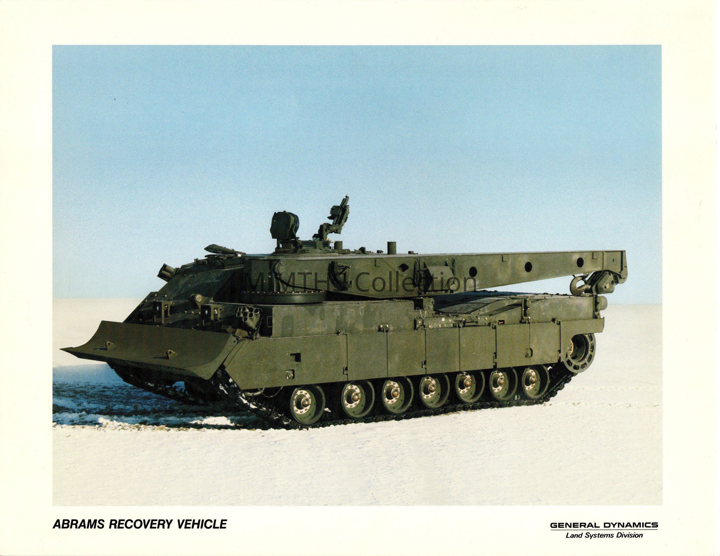 Publicity card for the M1 Abrams based Recovery Vehicle printed by General Dynamics. These were handed out at trade shows, air shows and open house events. This one features the M1 "basic" and dates from the mid 1990's.