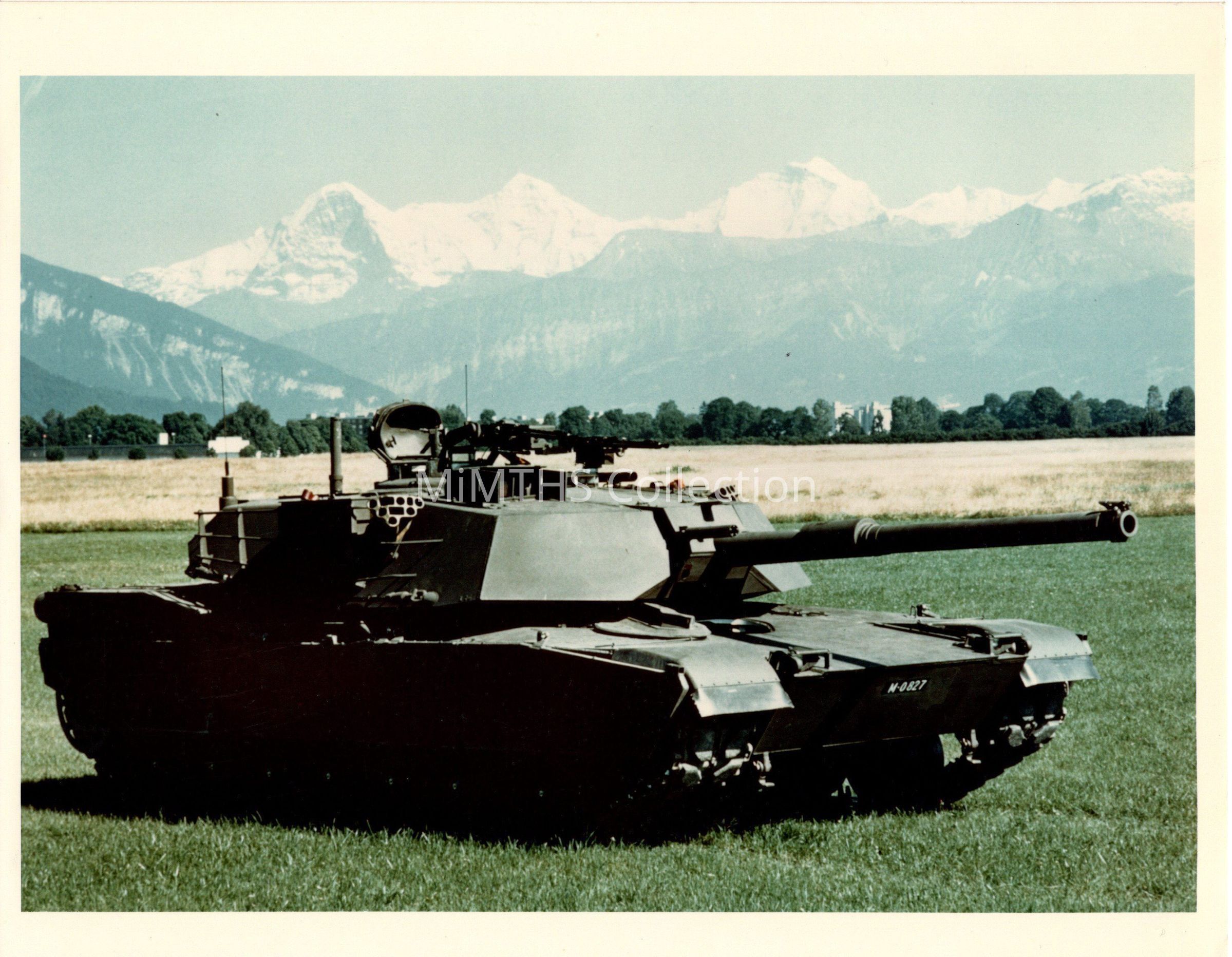 Original photo of an early M1 Abrams with mountains in the background.