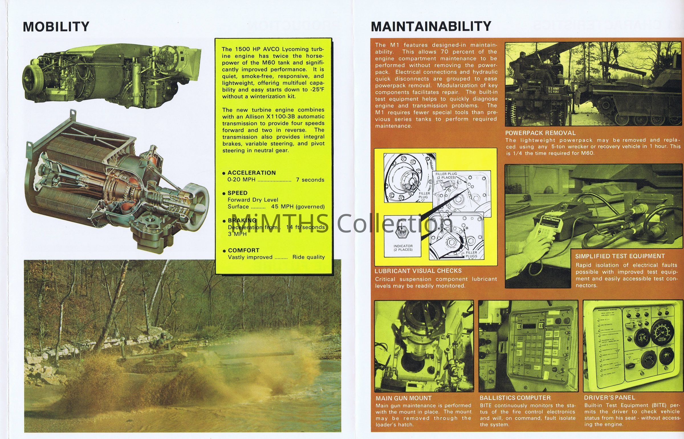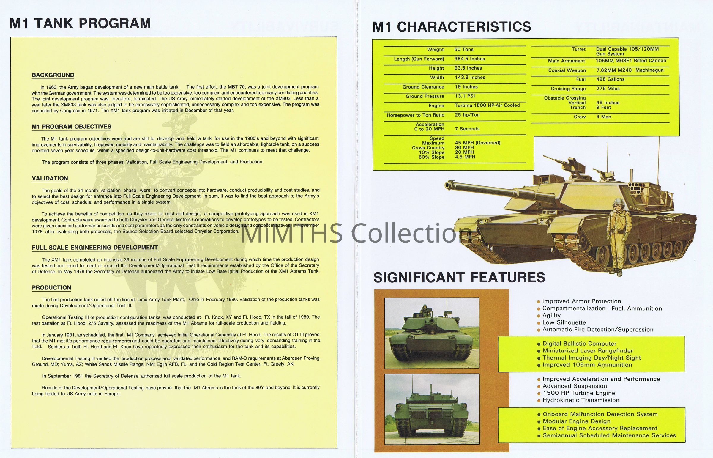 Early M1 Abrams tank program brochure showcasing the vehicles characteristics and significant features. Undated but based on the text it was printed circa 1980.Cataloged By