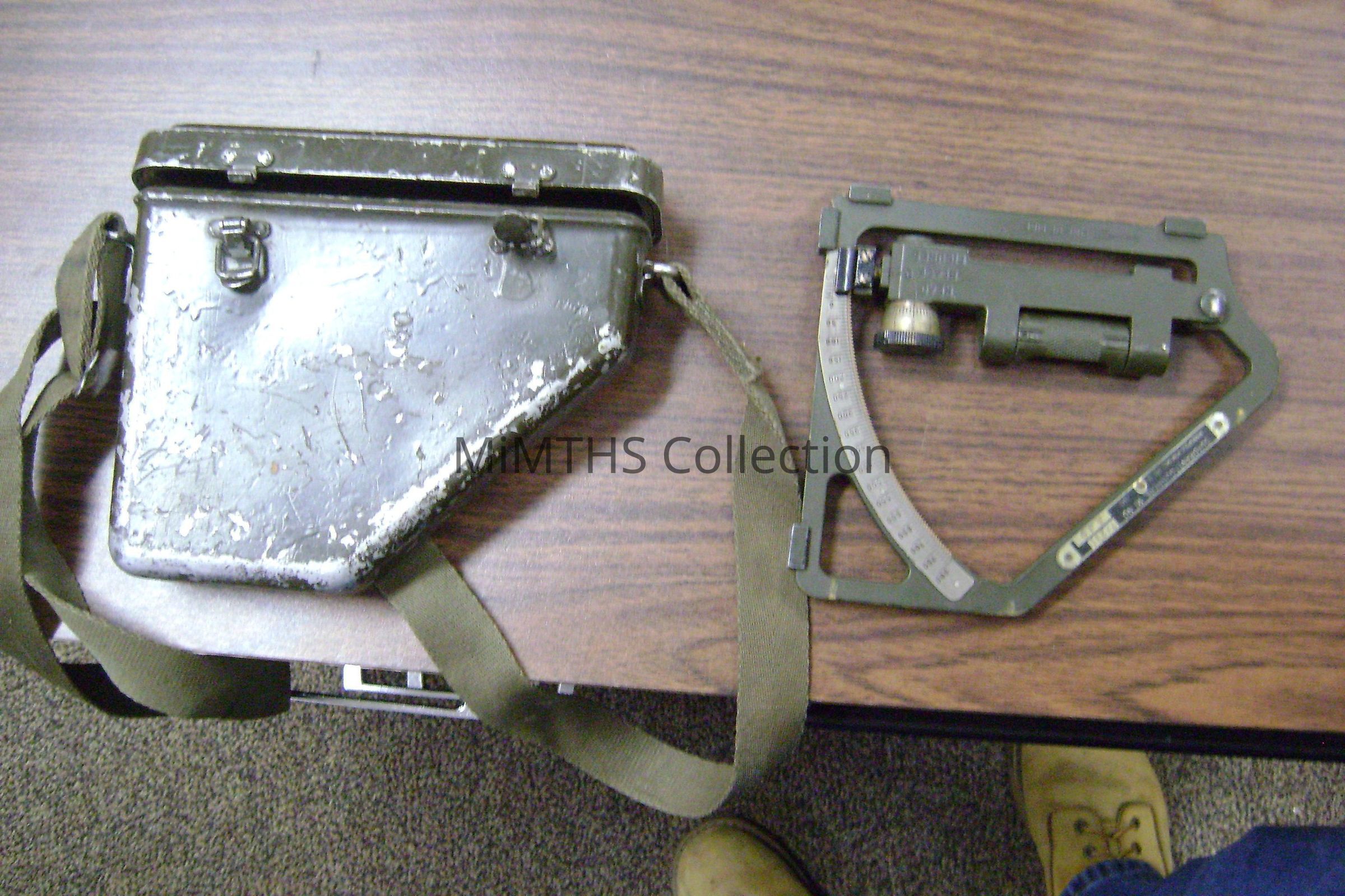 WWII-era M1 Gunner’s Quadrant, a portable precision leveling instrument used for laying artillery weapons in elevation, measuring their angles of elevation, and checking the elevation mechanisms of fire control equipment. The Gunners Quadrant was also used to level the guns of aircraft such as the B-29 Superfortress and to harmonize the guns with their gun sights. See image of page 67 from the B-29 Gunnery Manual describing the Quadrant.