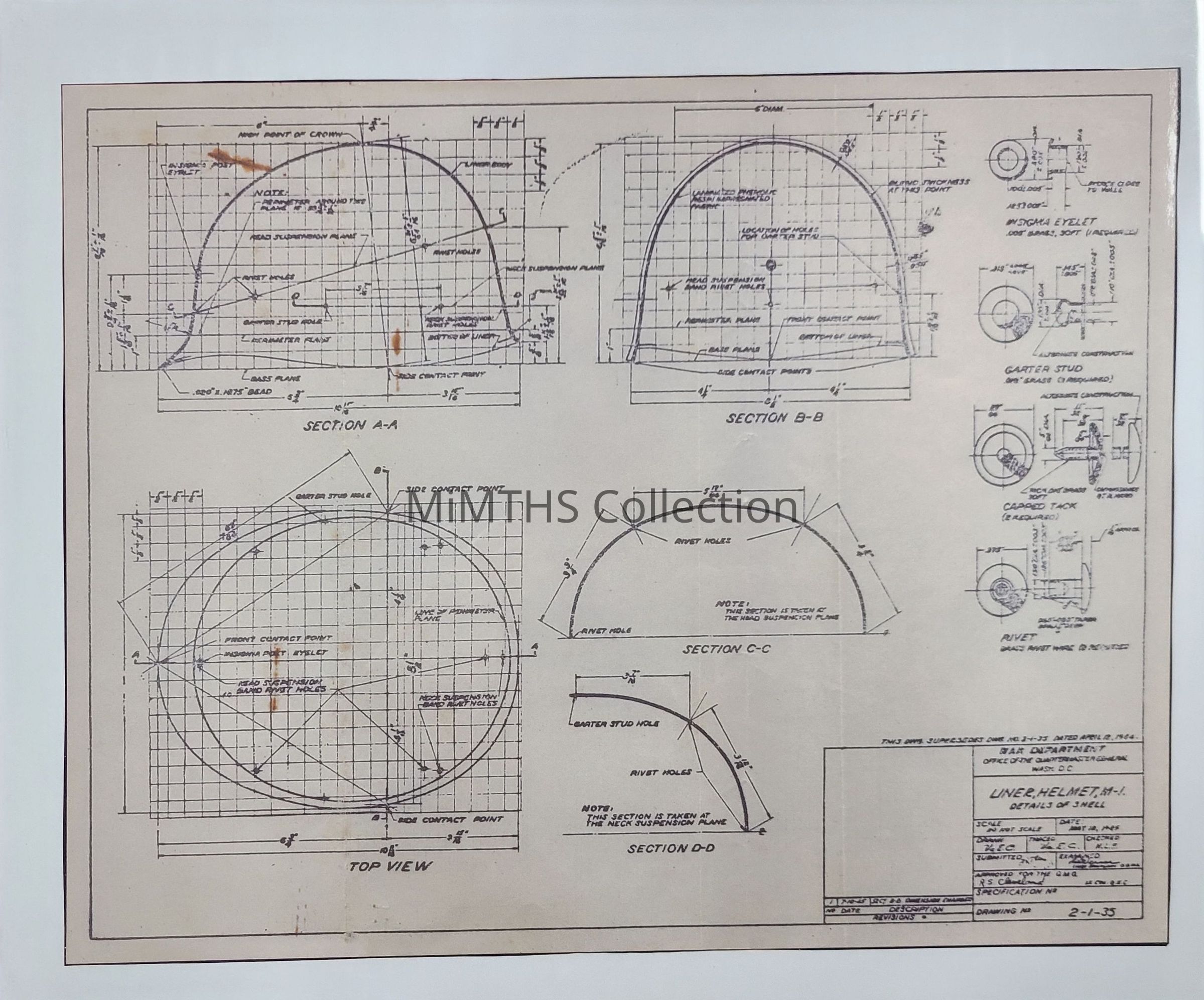 Reprint of the War Department assembly blueprint for the M1 Helmet Liner BlueprintCataloged By