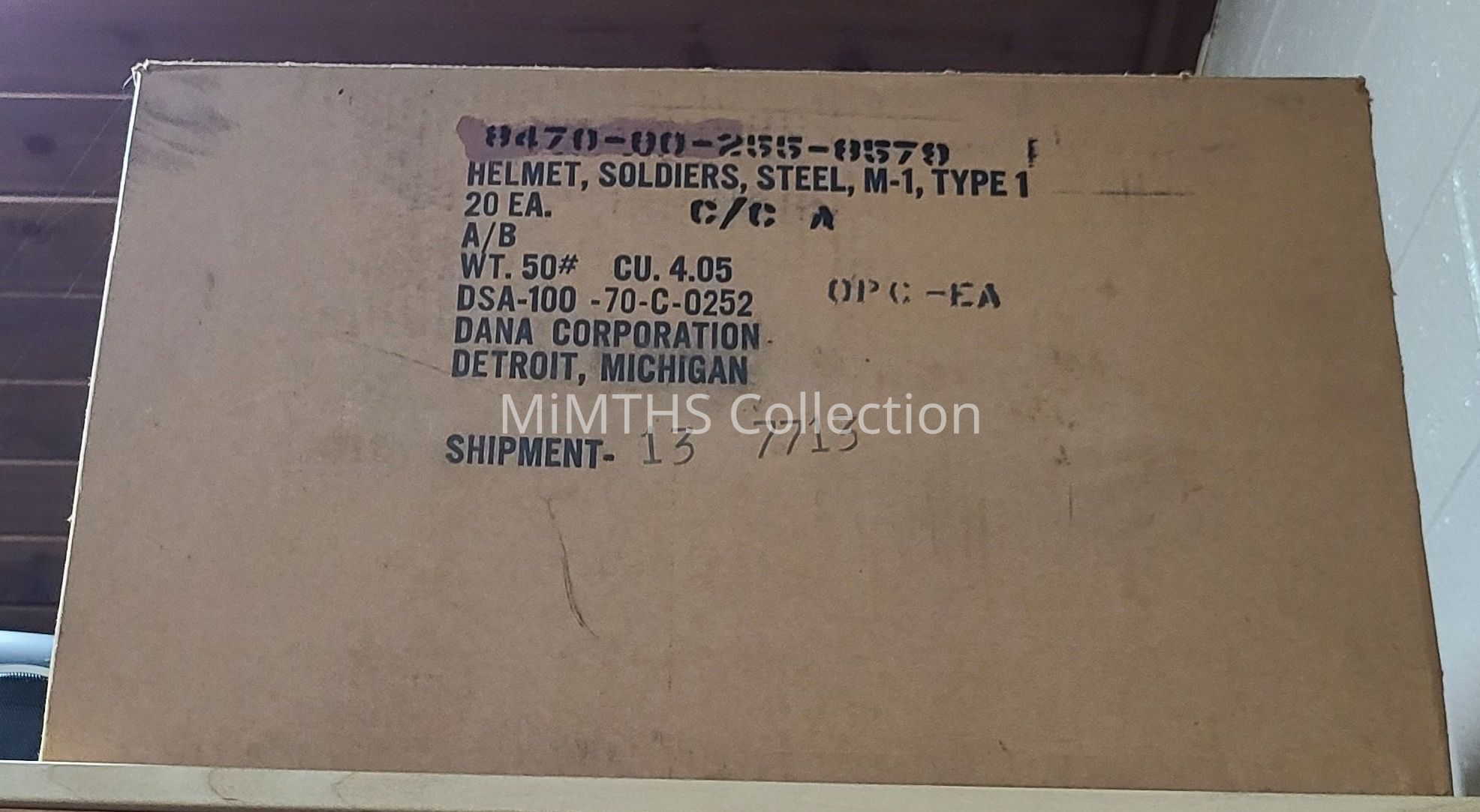 M1 Helmet Shipping boxEntry/Object ID