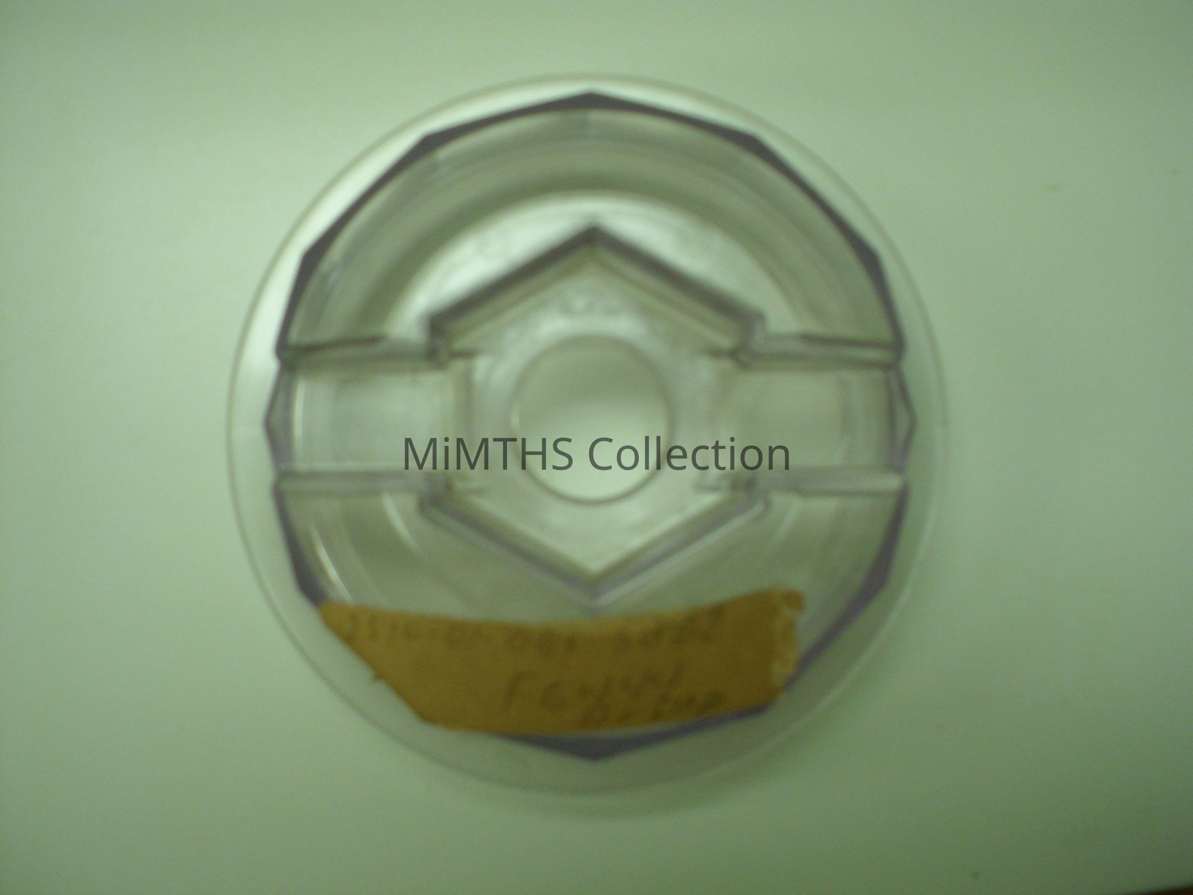 "Clear plastic threaded center cap for the road wheel on the M1 Abrams FOV.Cataloged By