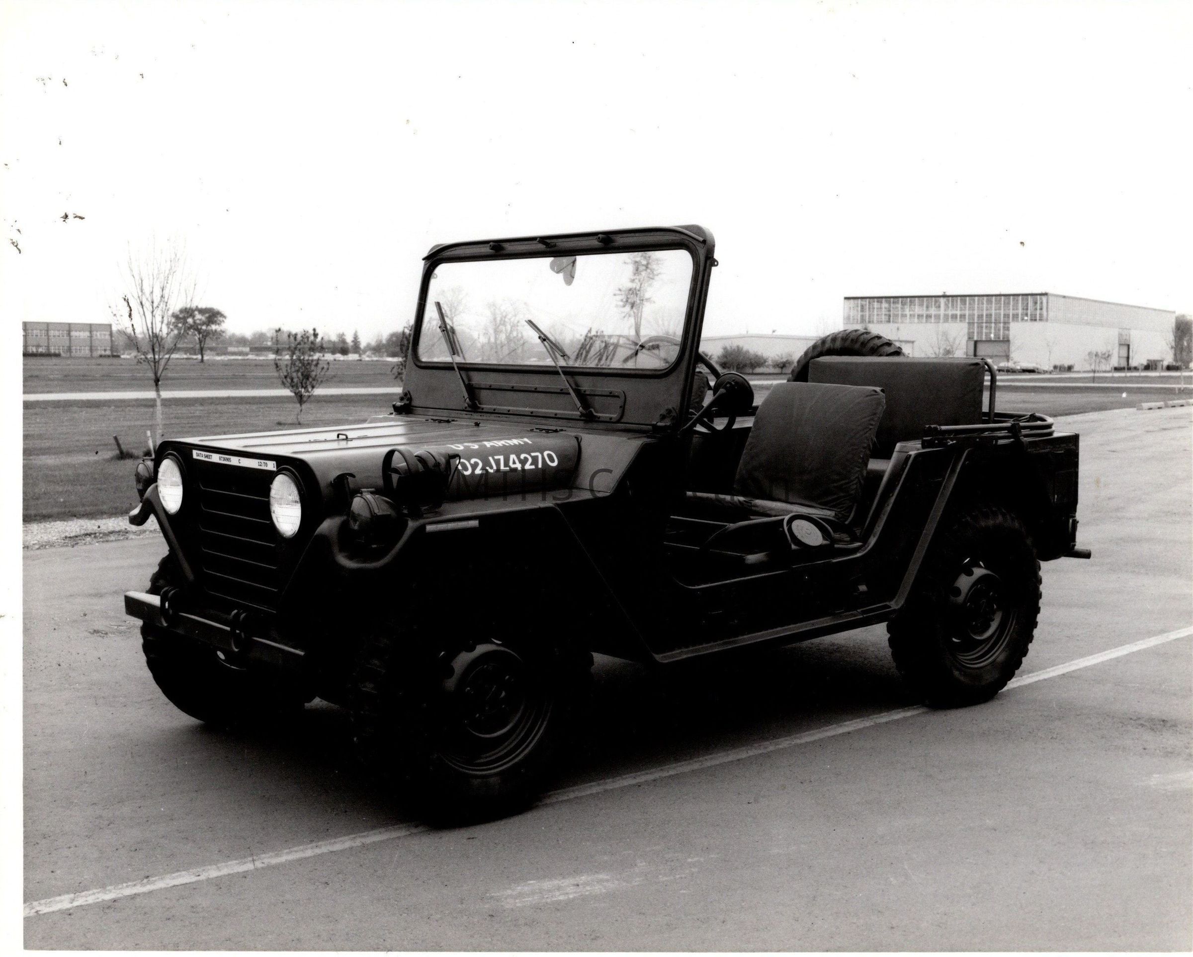 The M151 has a label on the grille that appears to denote a vehicle test in December 1970.