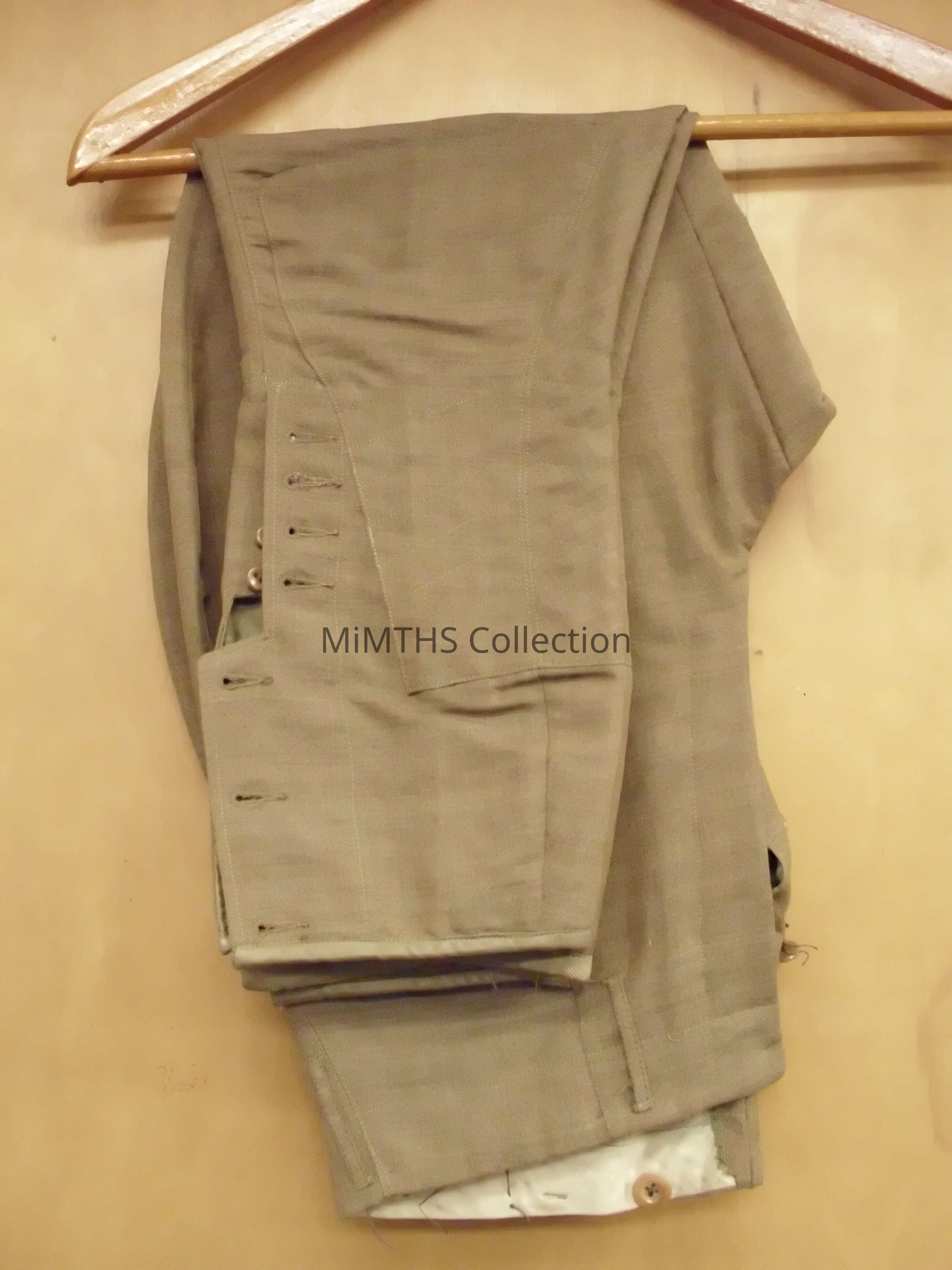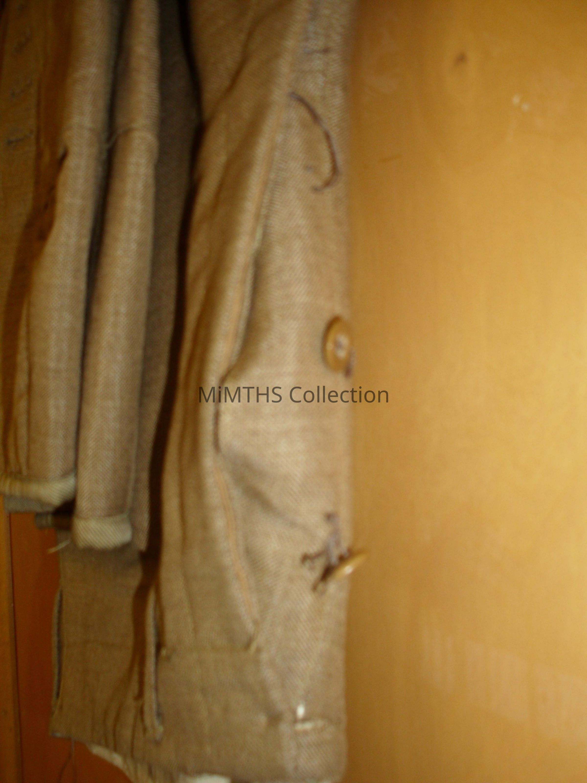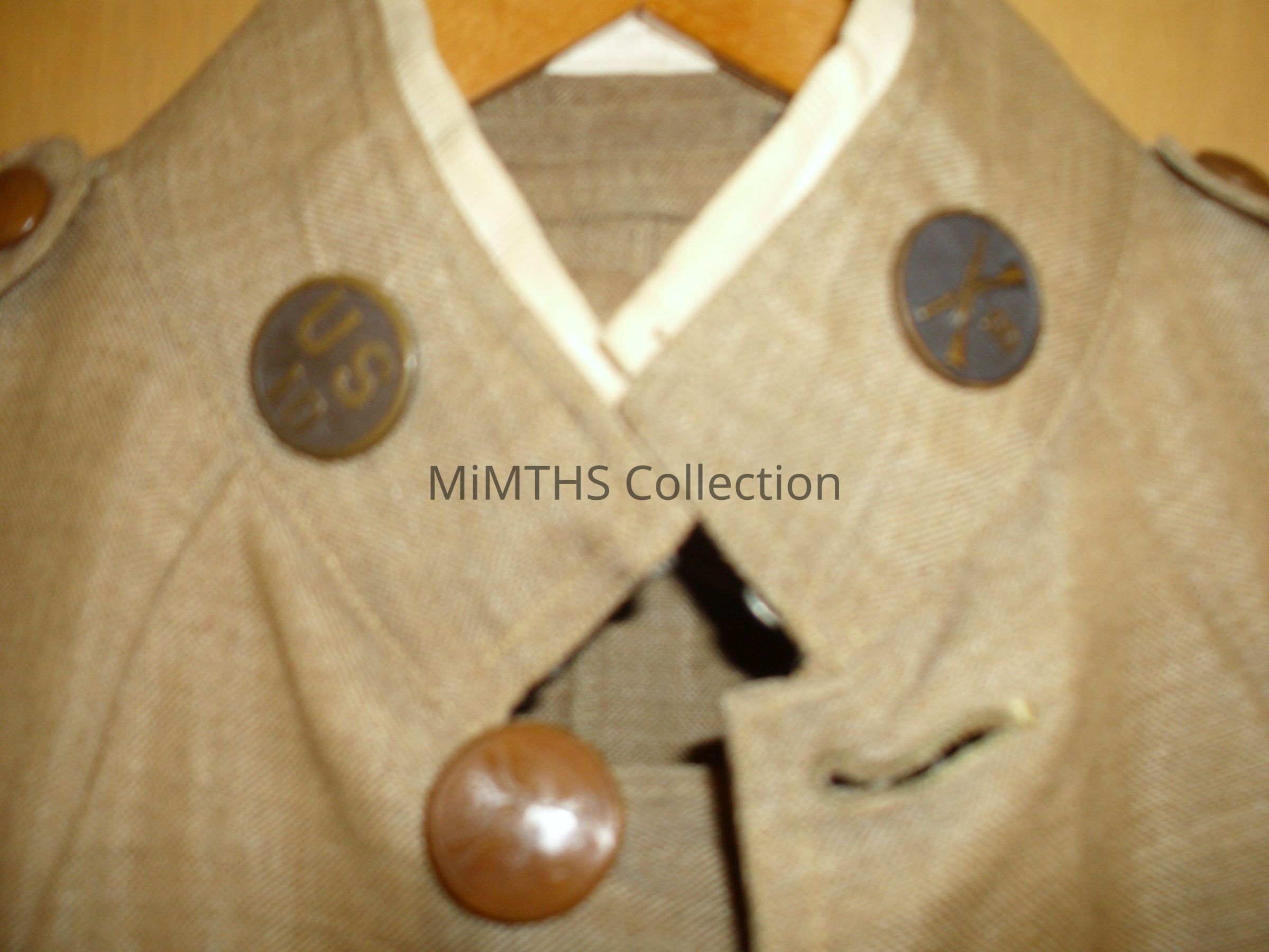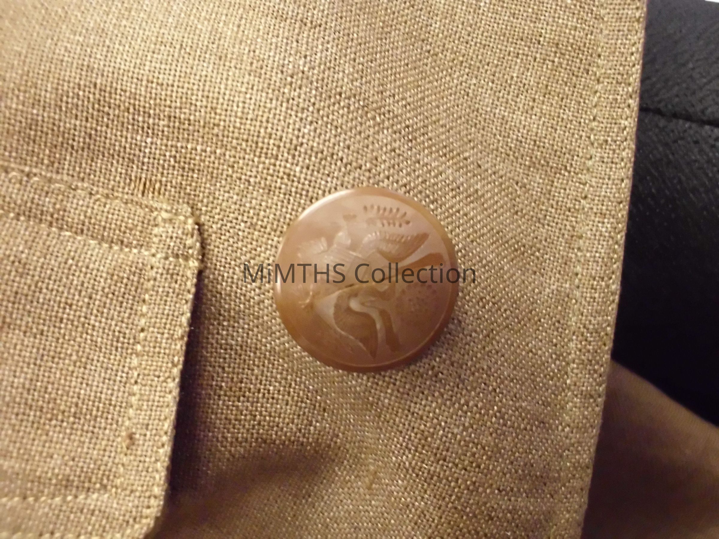 The brown buttons on this uniform are an early form of plastic called “Vegetable Ivory”. Because of the rationing of brass and other metals, “vegetable” buttons are commonly found on privately purchased World War I era uniforms.Cataloged By
