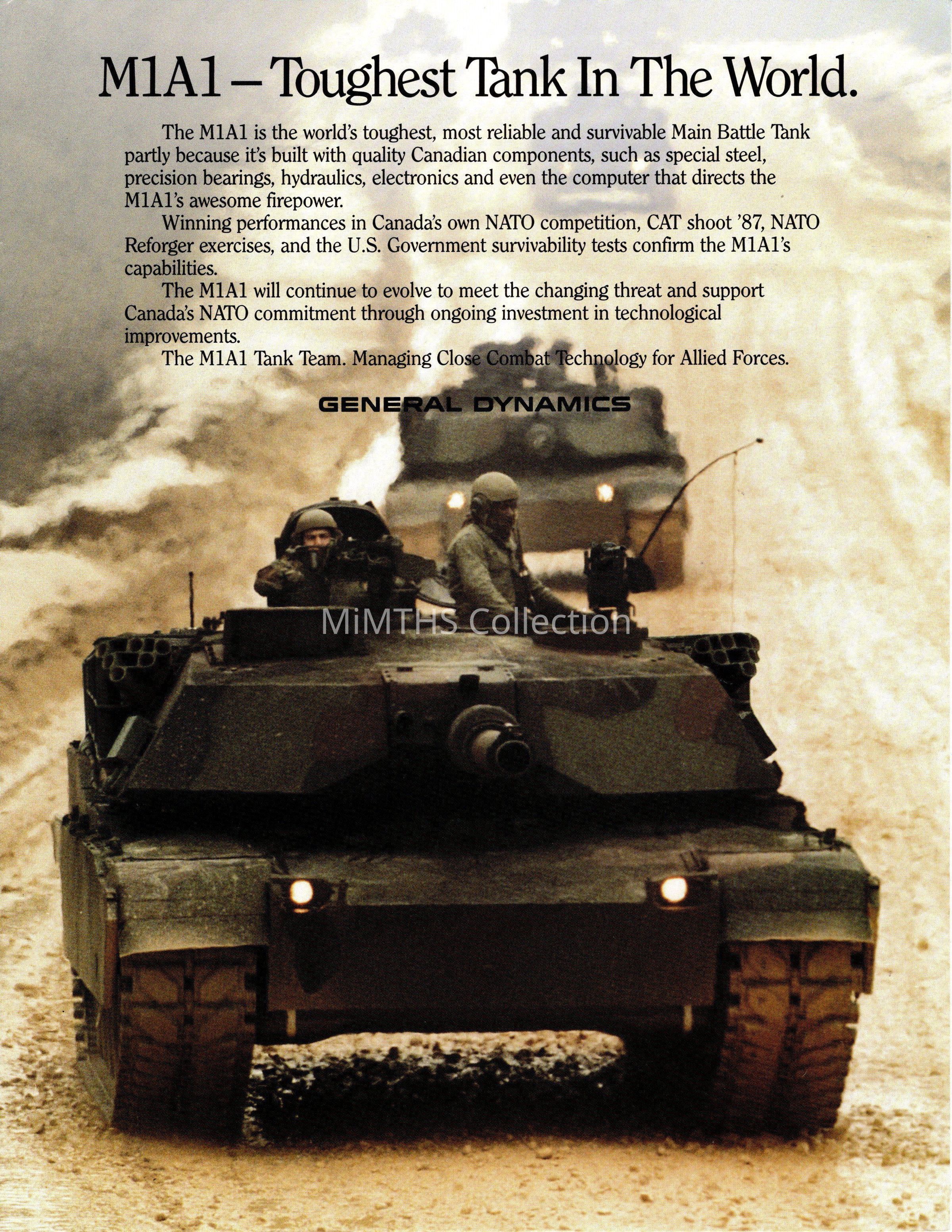 M1A1 Abrams broadside printed by General Dynamics showcasing the "new" M1A1 Abrams tank.