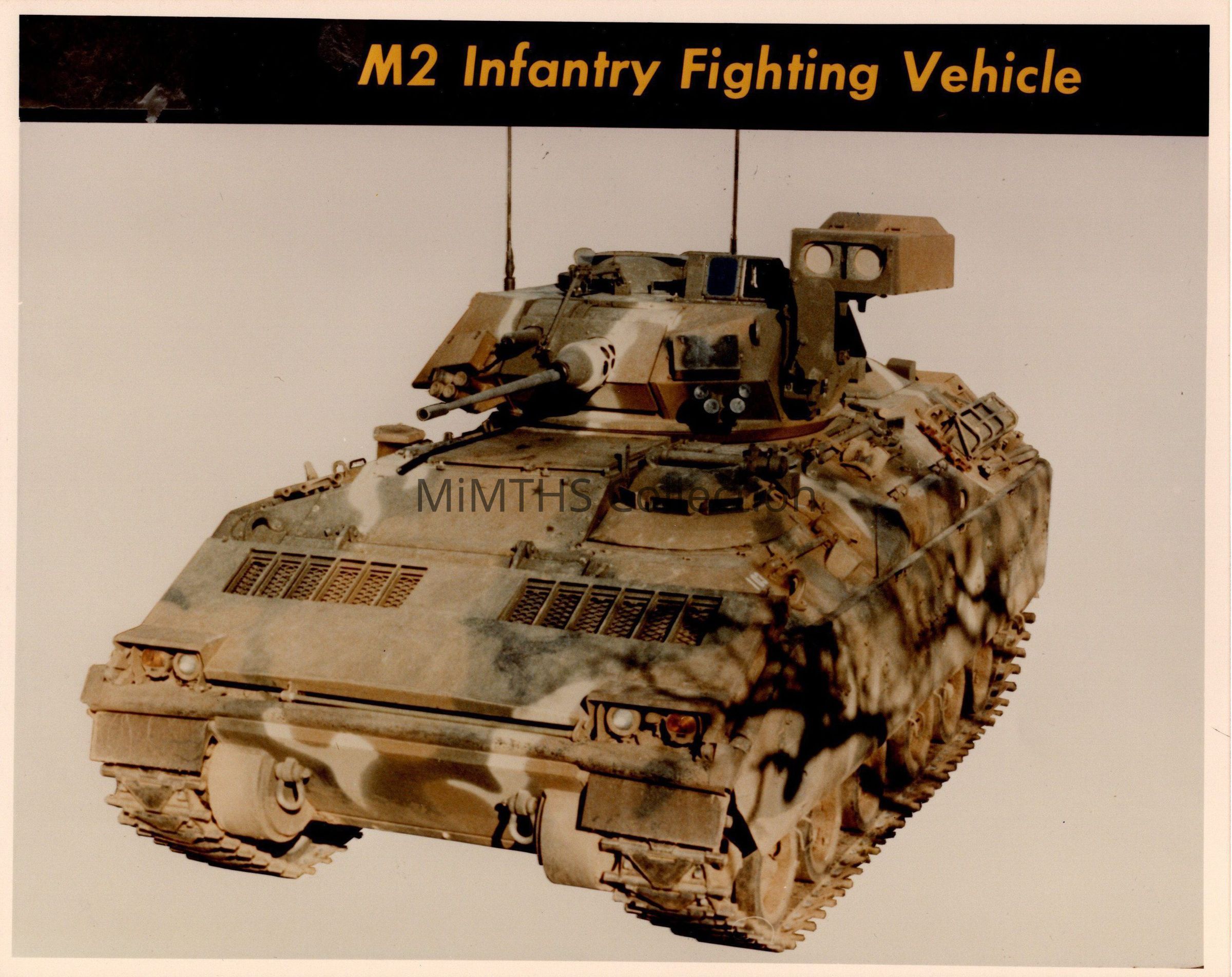 Publicity photo of an early M2 Bradley Infantry Fighting VehicleCataloged By