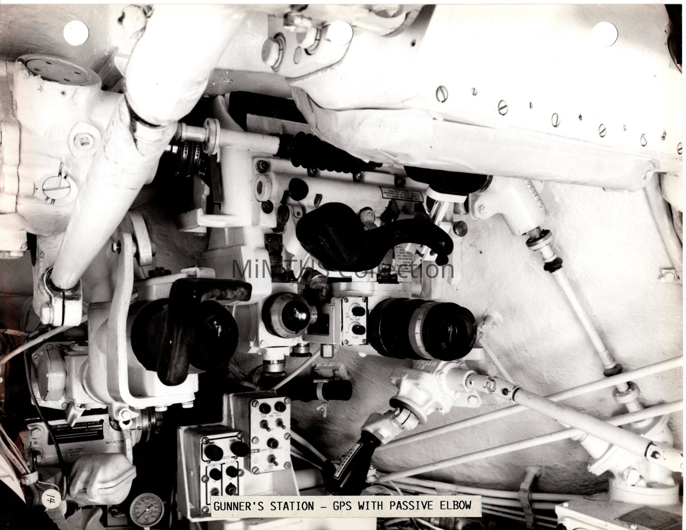 General Dynamics photo of the gunners station in an M60A3 Tank showing the gunners primary sight (GPS)