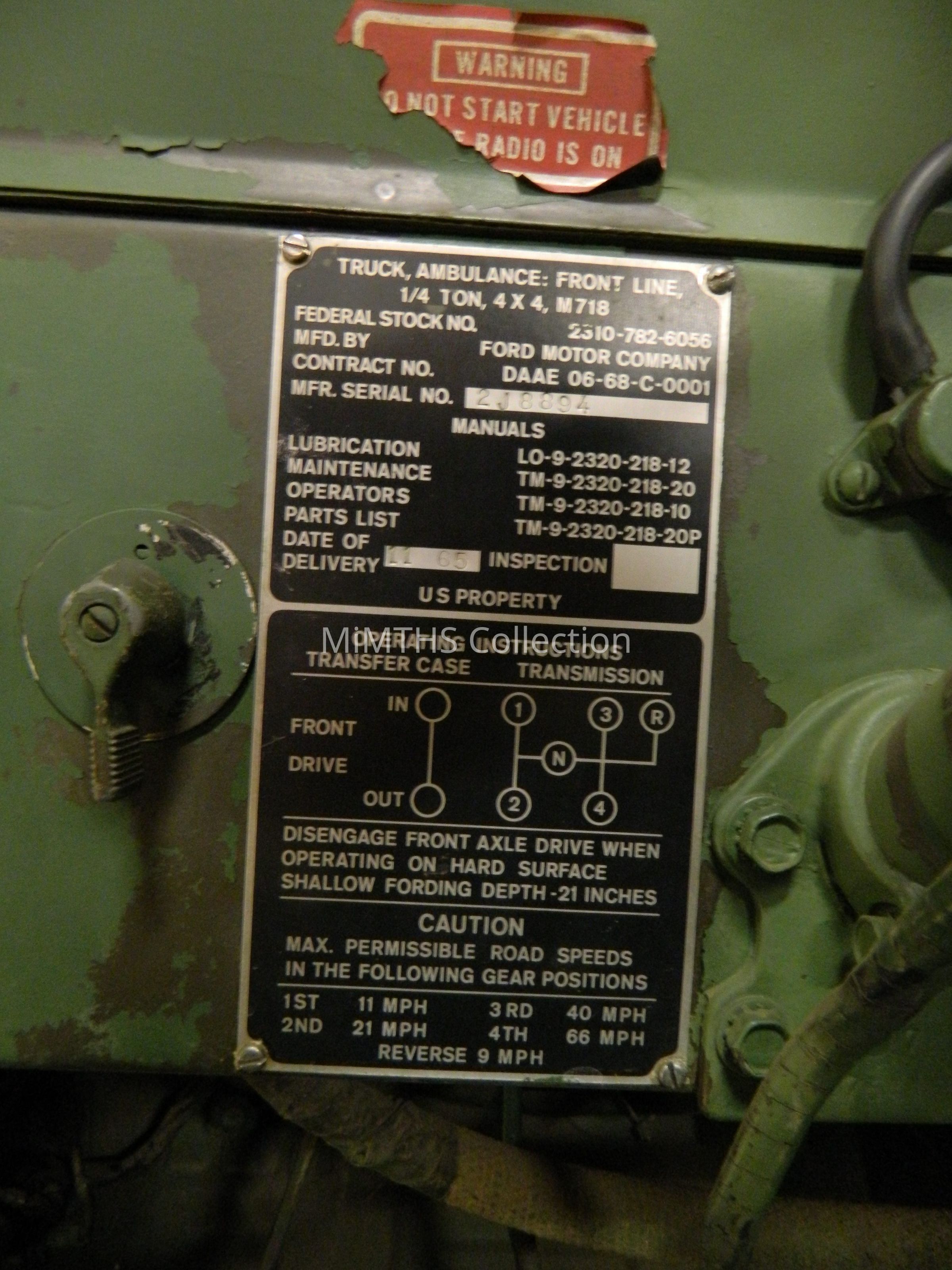 Based on the M151 platform, the M718 ¼ ton, 4x4, frontline ambulance could carry ambulatory and litter patients. The cargo area of the M718 vehicles is longer and higher than the base M151 to accommodate the litters and patients.