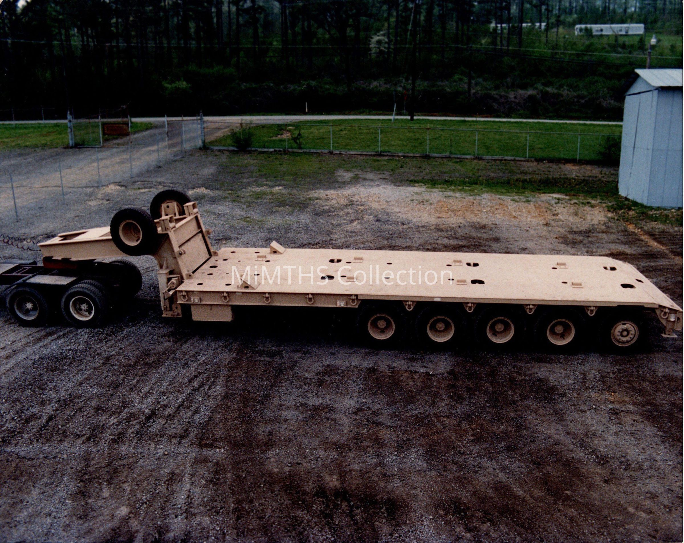 Color Publicity photo of an M747 Heavy Equipment Transport TrailerCataloged By