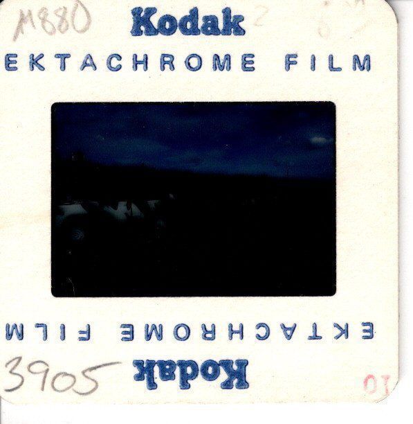 Color slide of a line of Dodge M880 trucks in winter cammo.Cataloged By