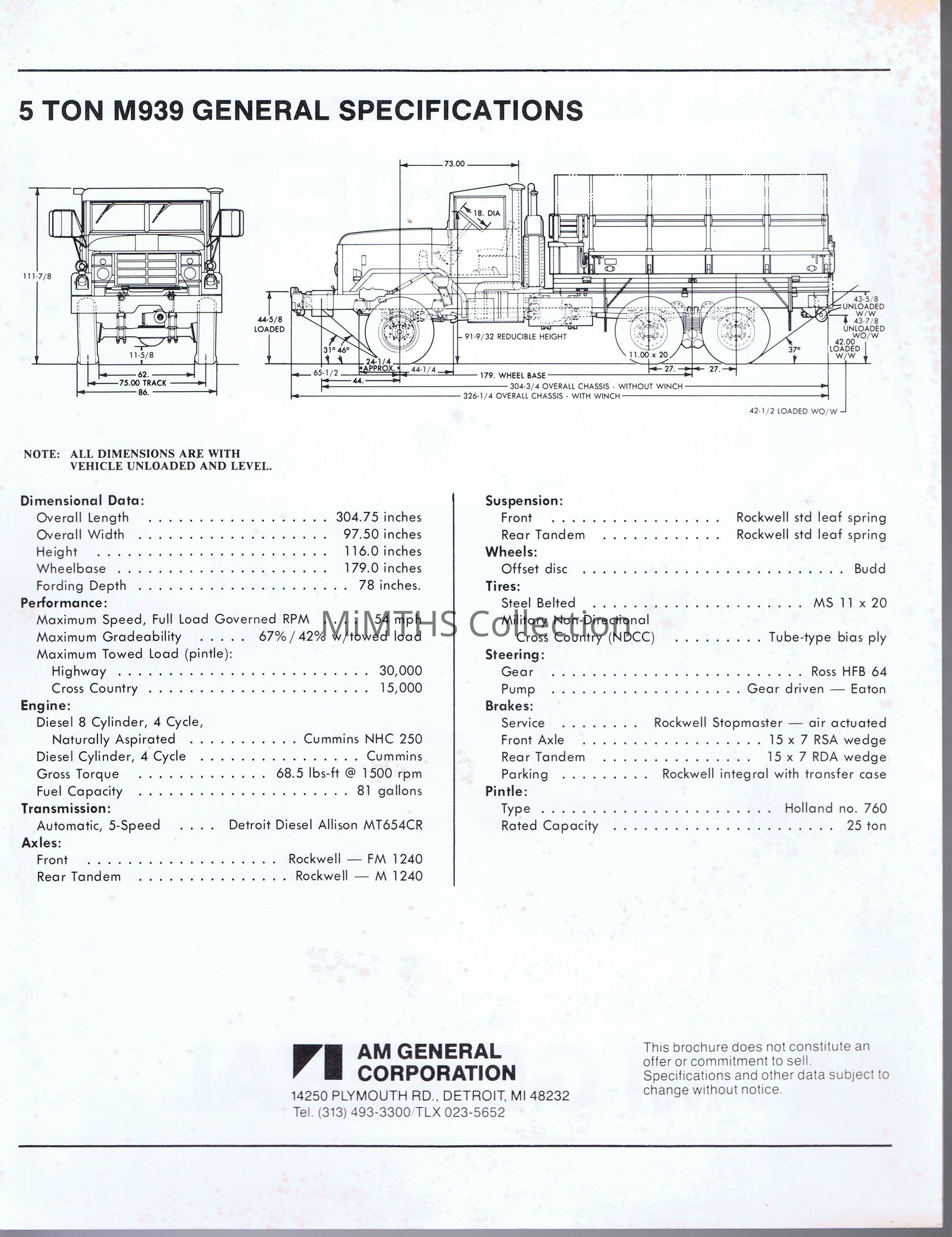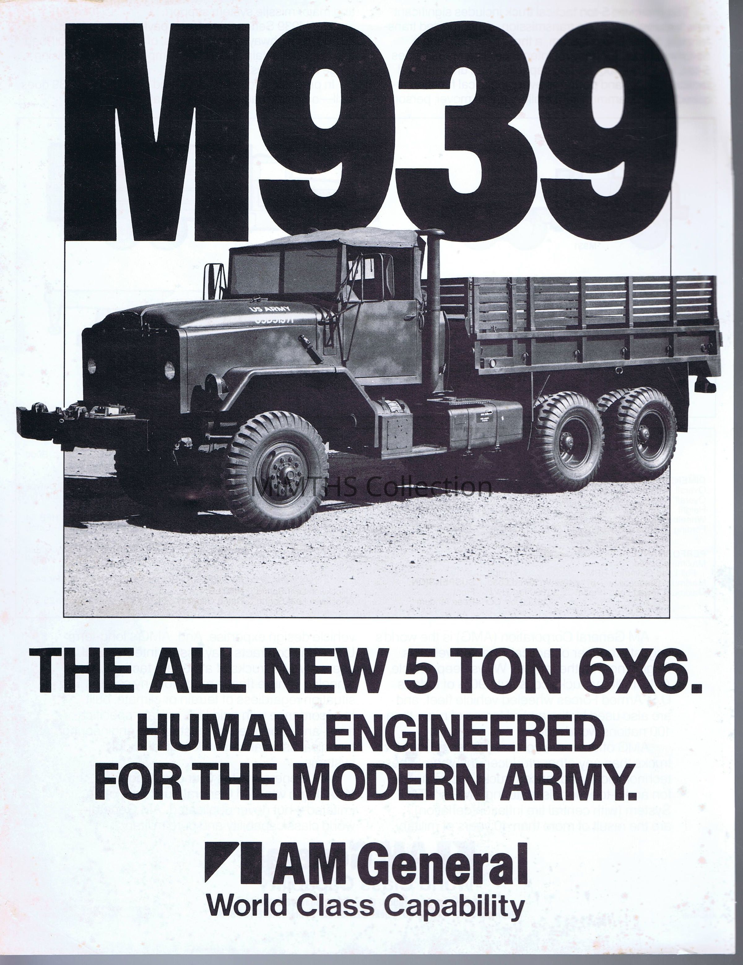 M939, The All New 5 Ton 6X6, Human Engineered for the Modern Army, AM General informational sheet.Cataloged By