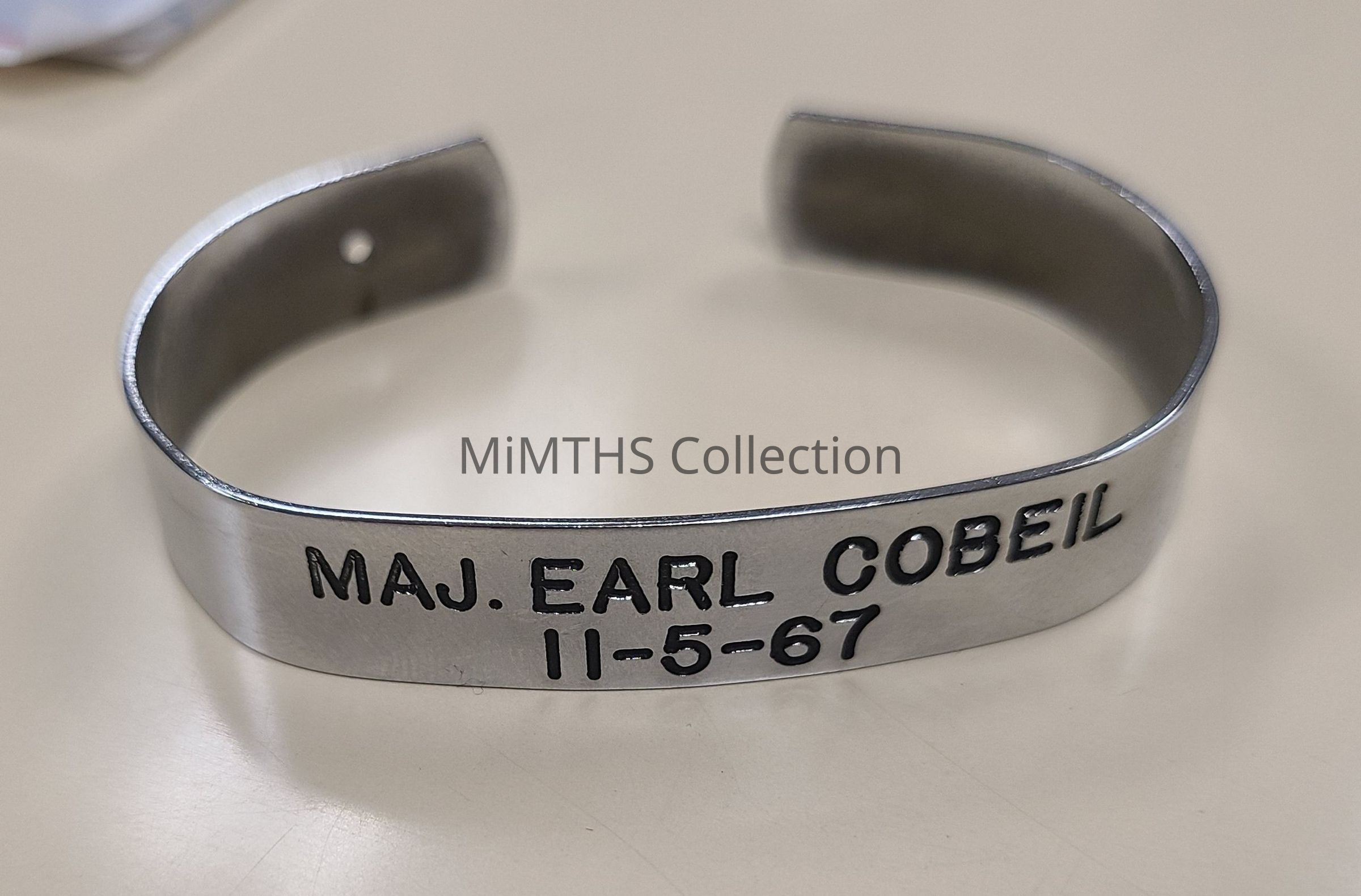 POW bracelet with Maj. Earl Cobeil 11-5-67 engraved.Cataloged By