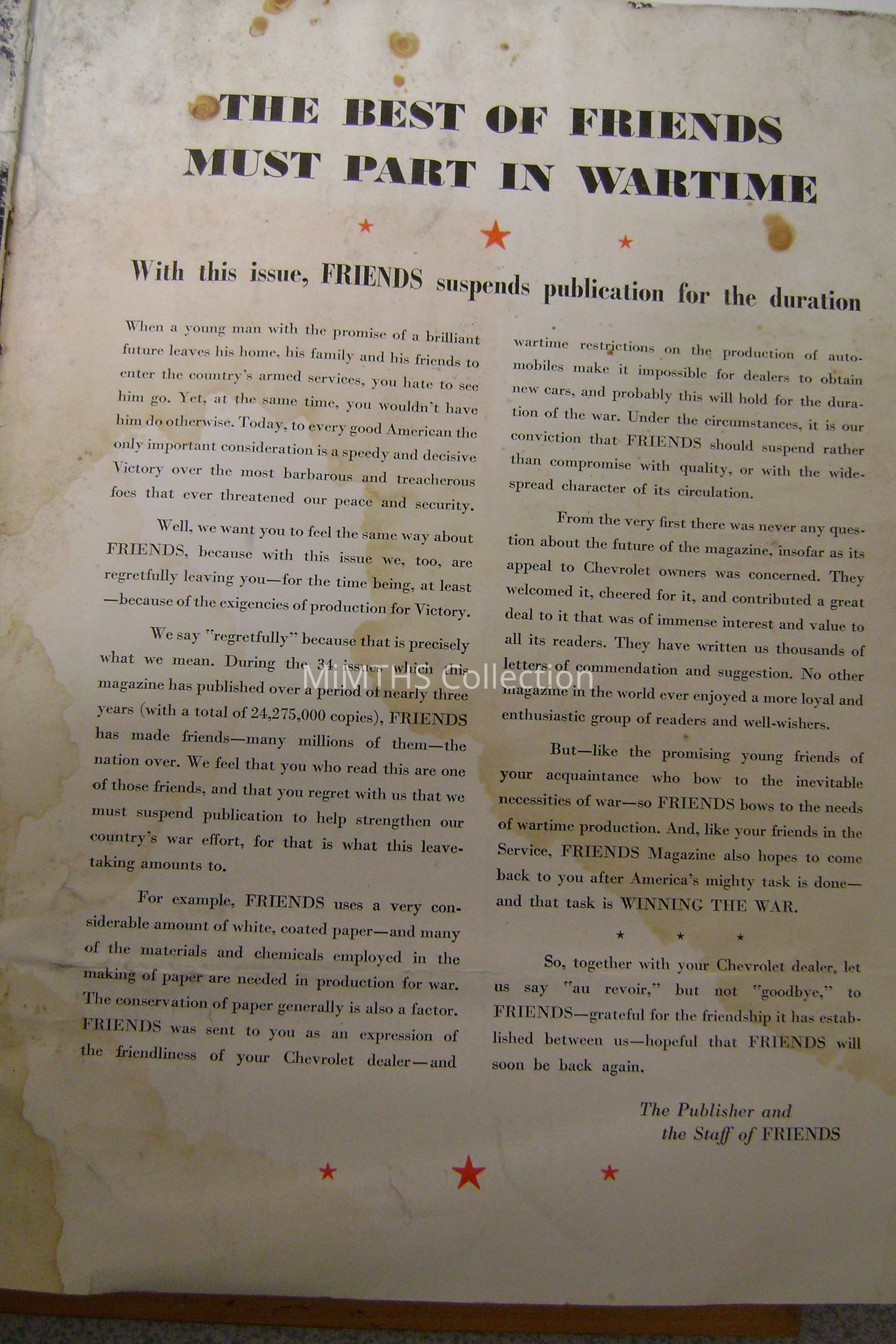 March 1942 issue of "Friends" magazine printed by Chevrolet, this was the last issue printed, publication was suspended "for the duration"Cataloged By