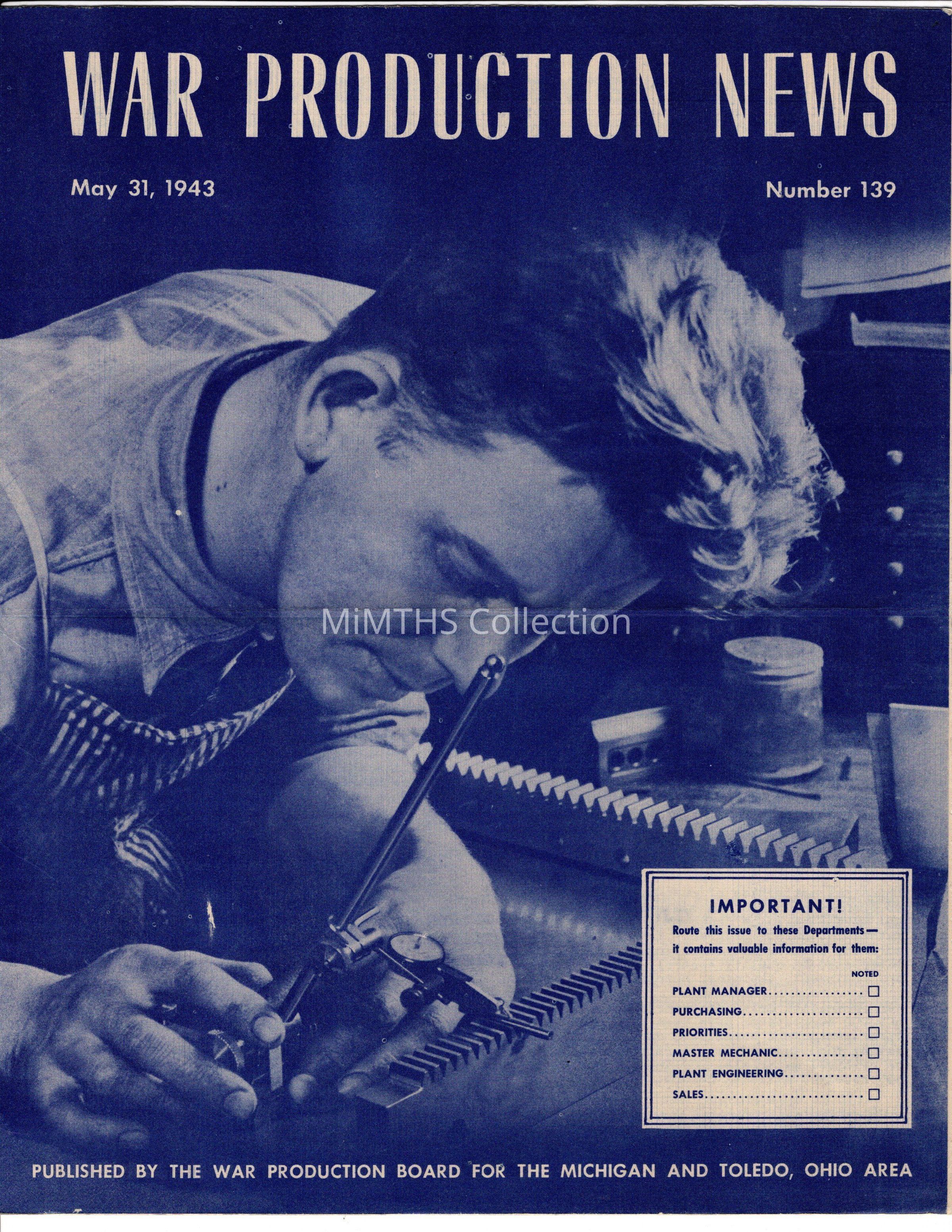 May 31, 1943, 1944 issue of War Production News, Published by the War Production Board for Michigan and the Toledo Ohio area.