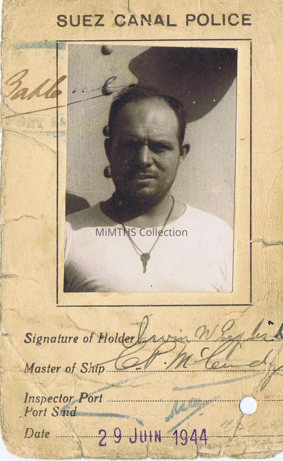 Merchant Marine Suez Canal Police Port Said Pass Photo ID