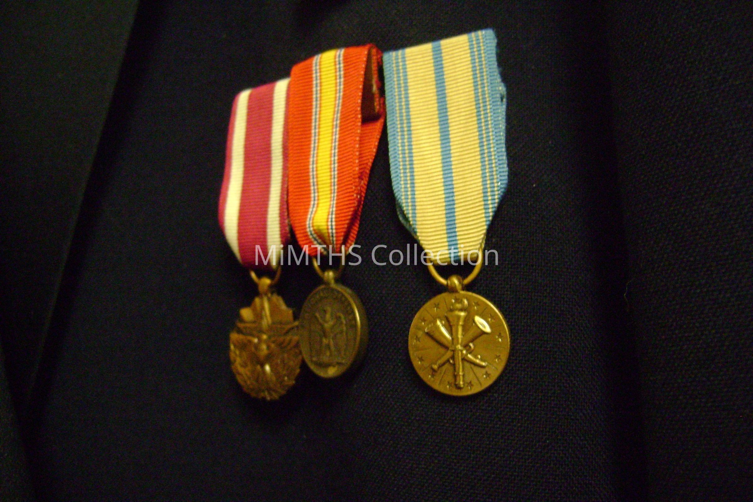 The blue and tan ribbon is a medal of Armed Forces Reserve Medal. It was insituted in 1950. Given for 10 years of honorable service within a 12 year period.Cataloged By