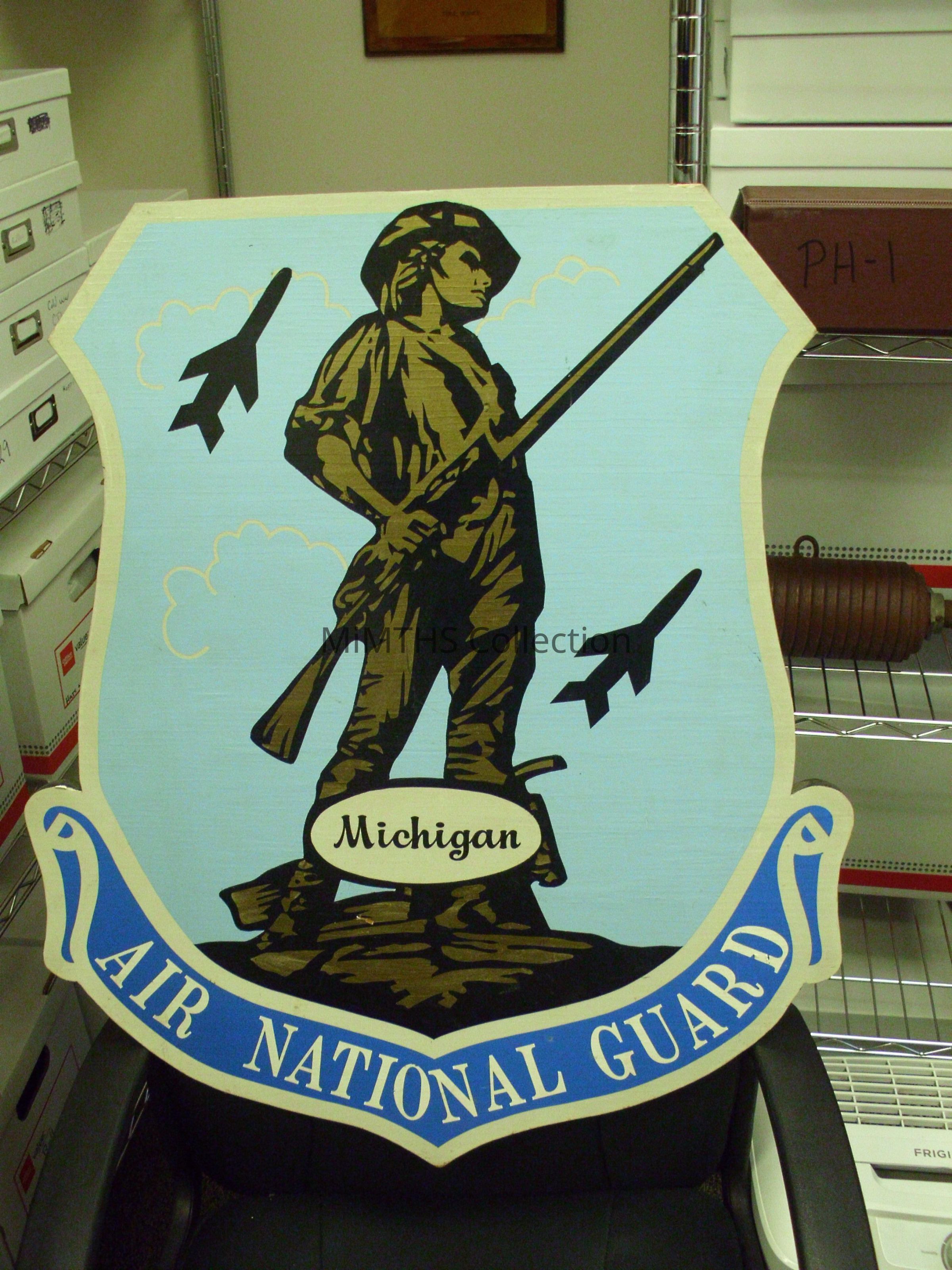 Michigan Air Guard blue & white sign w/ old ANG minutman logo