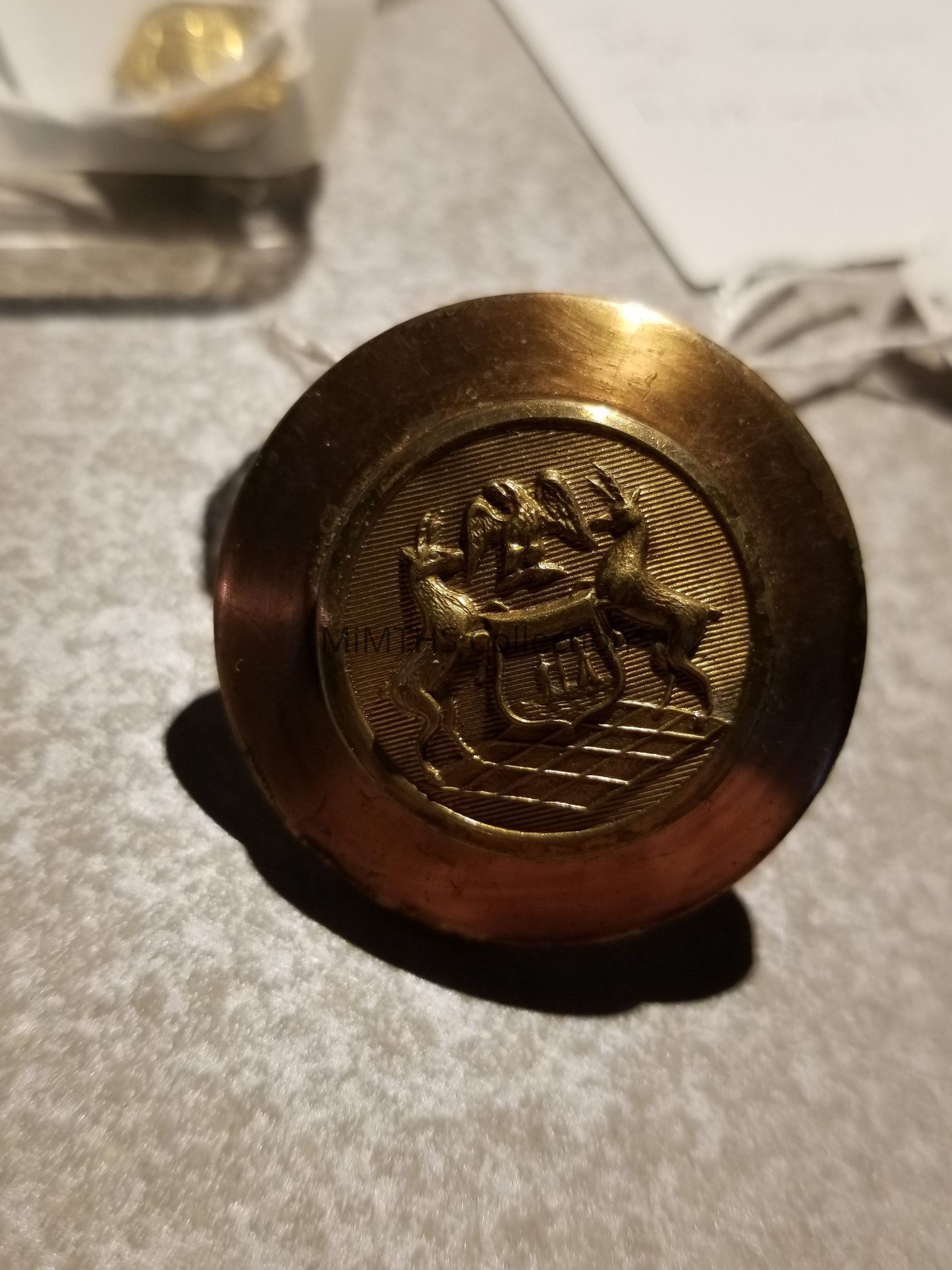 Enlisted MST cap badge, appears home made from a MST uniform button, screw and disc back.
