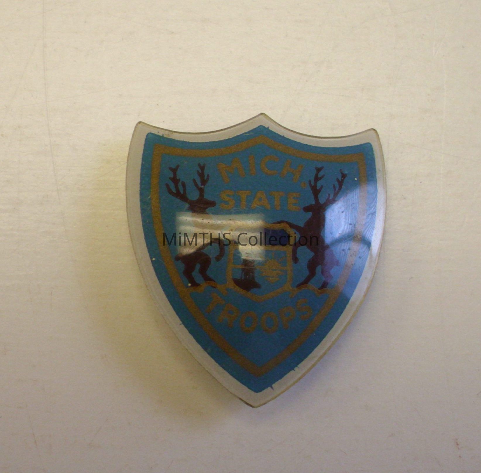 1" plastic color DUI for the Michigan State Troops, Pin back,