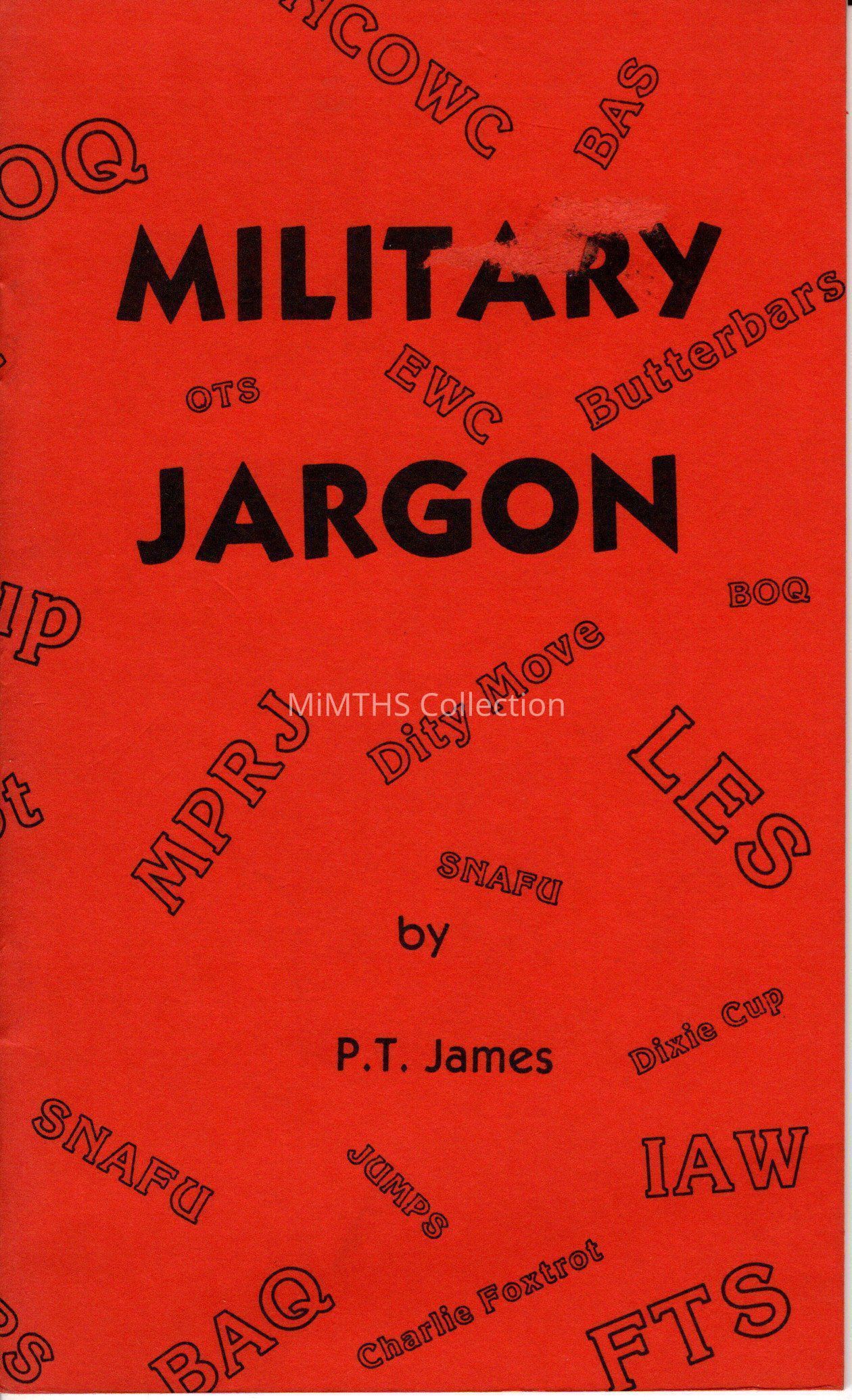 Military Jargon, by PT James copyright 1985 by Mary Preston Gross, Beau Lac Publisher's. Definitions of military terminology and acronyms.Cataloged By