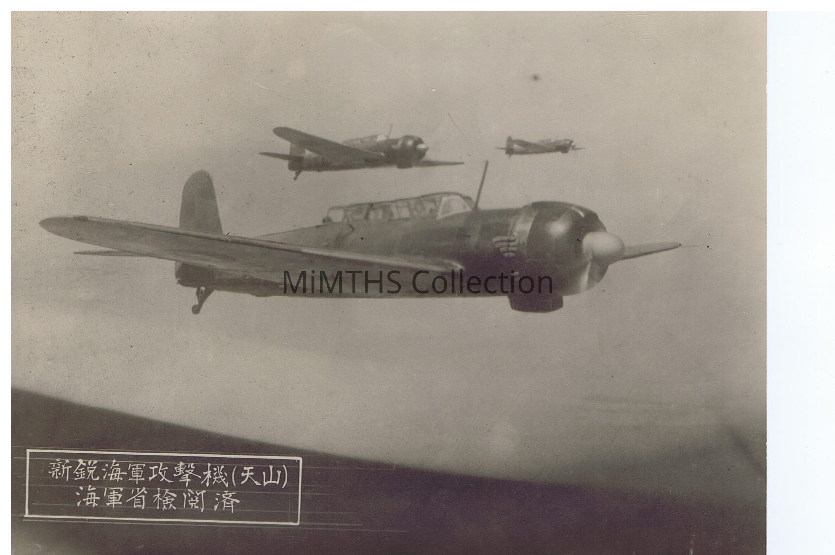 5.75x7.75in photo of three Japanese planes. There is a label printed in the lower left corner, but it is in Japanese.