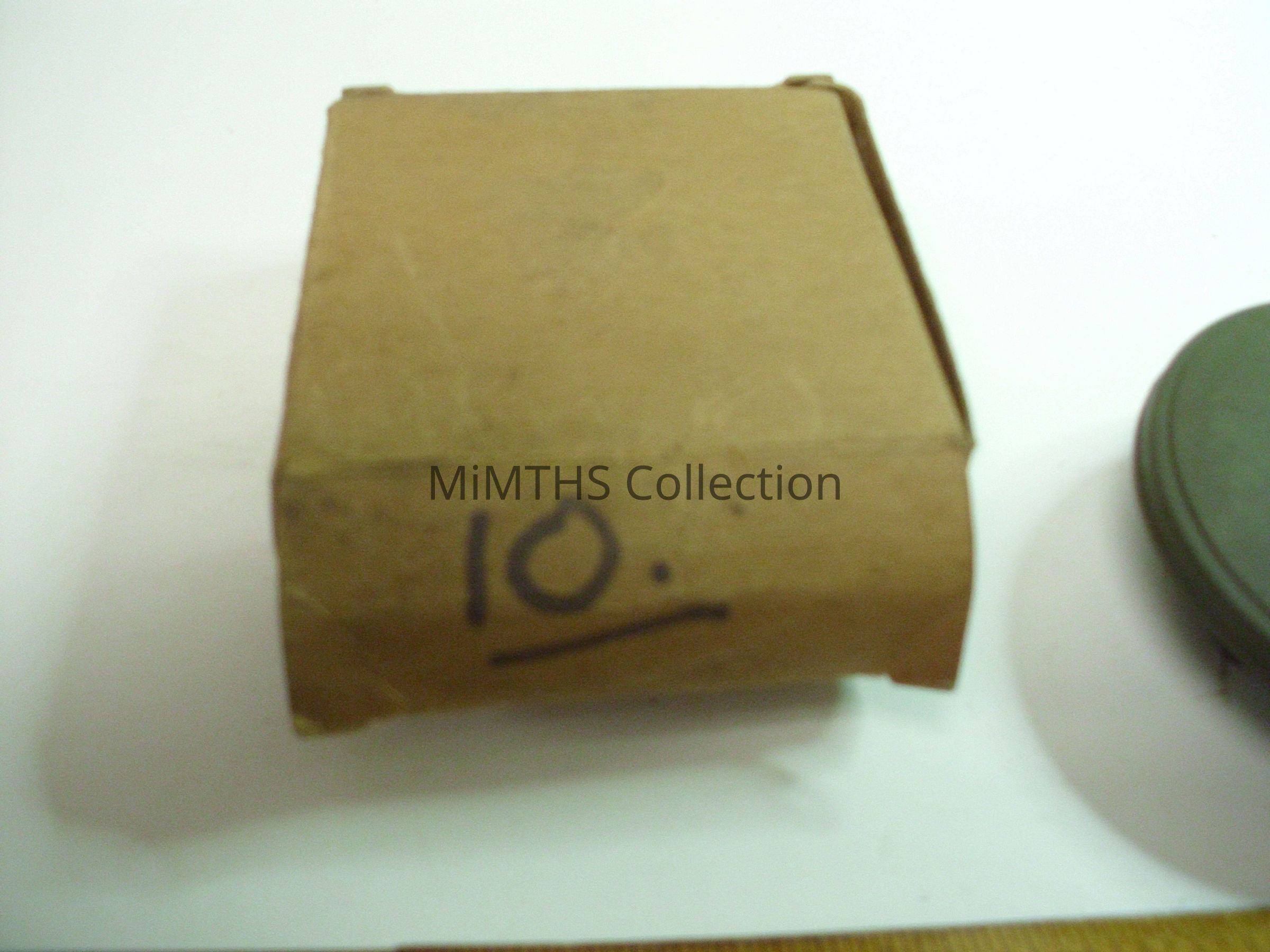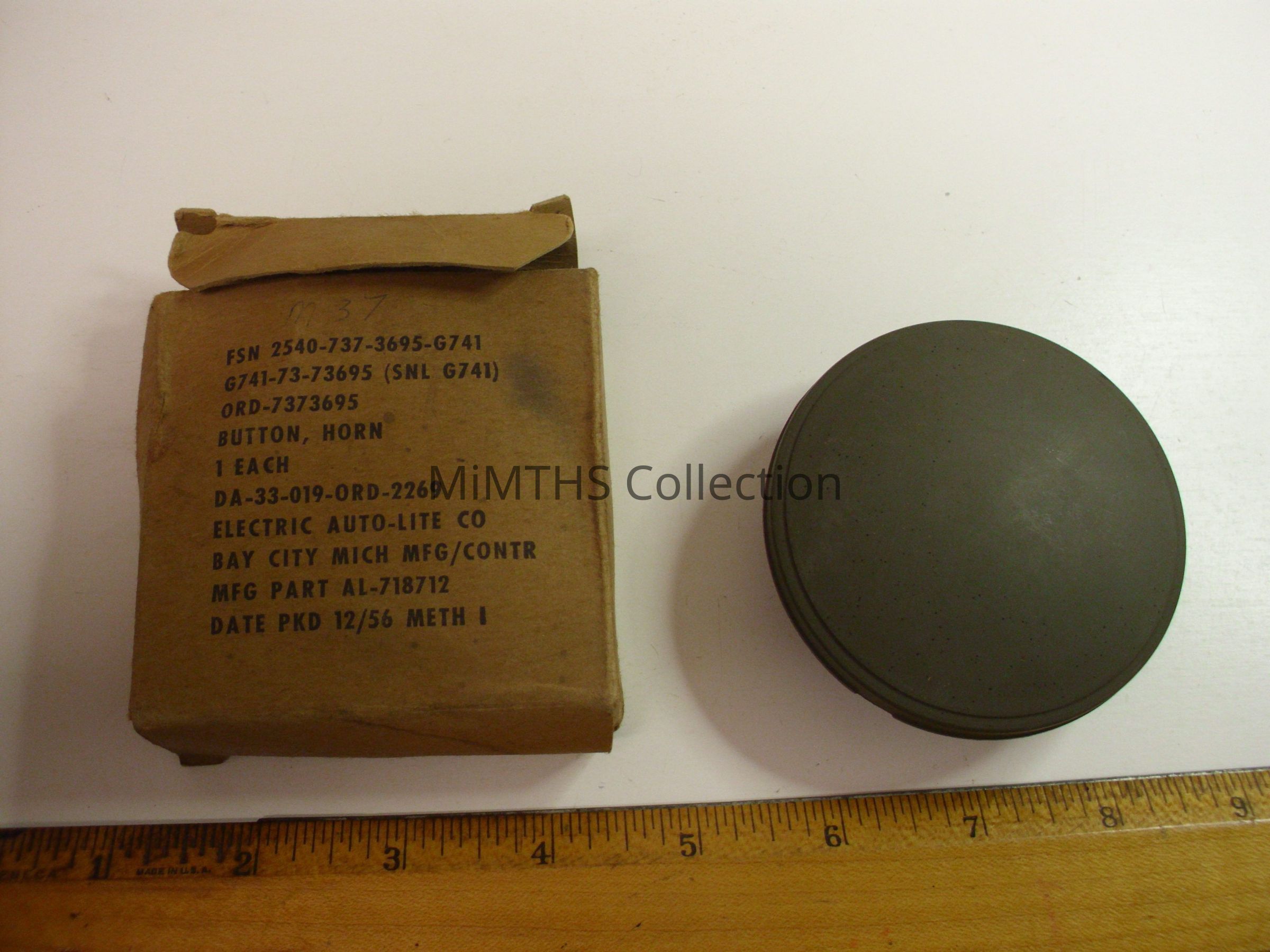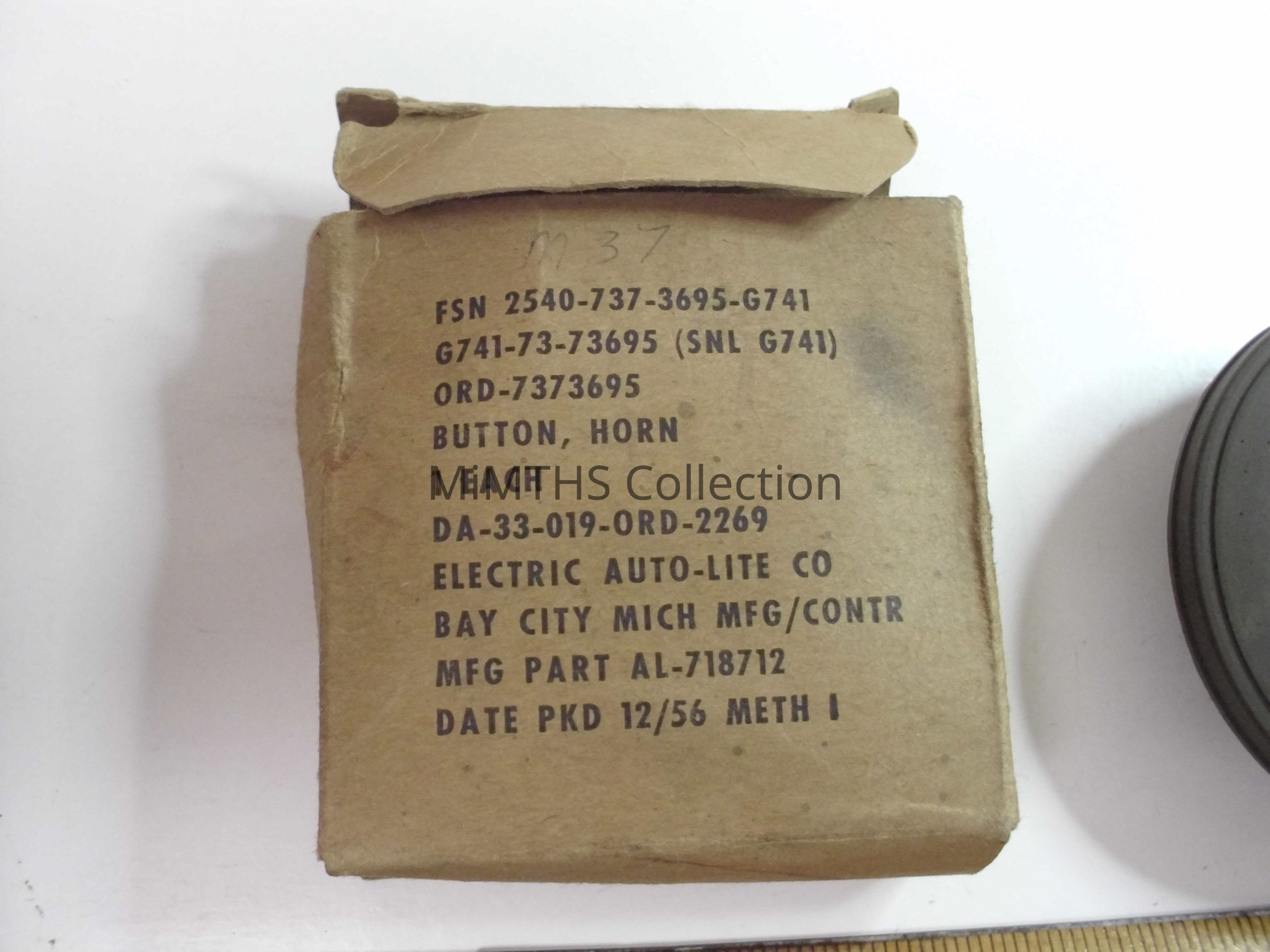 New old stock M37 horn button made by Electic Auto Lite Company of Bay City Michigan. In BoxCataloged By