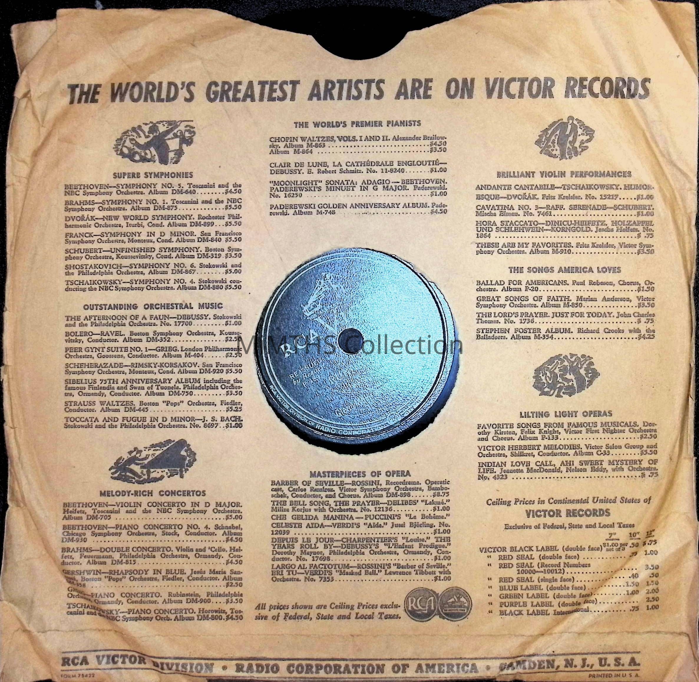 Phonograph Record: V for Victory/Panda BearEntry/Object ID