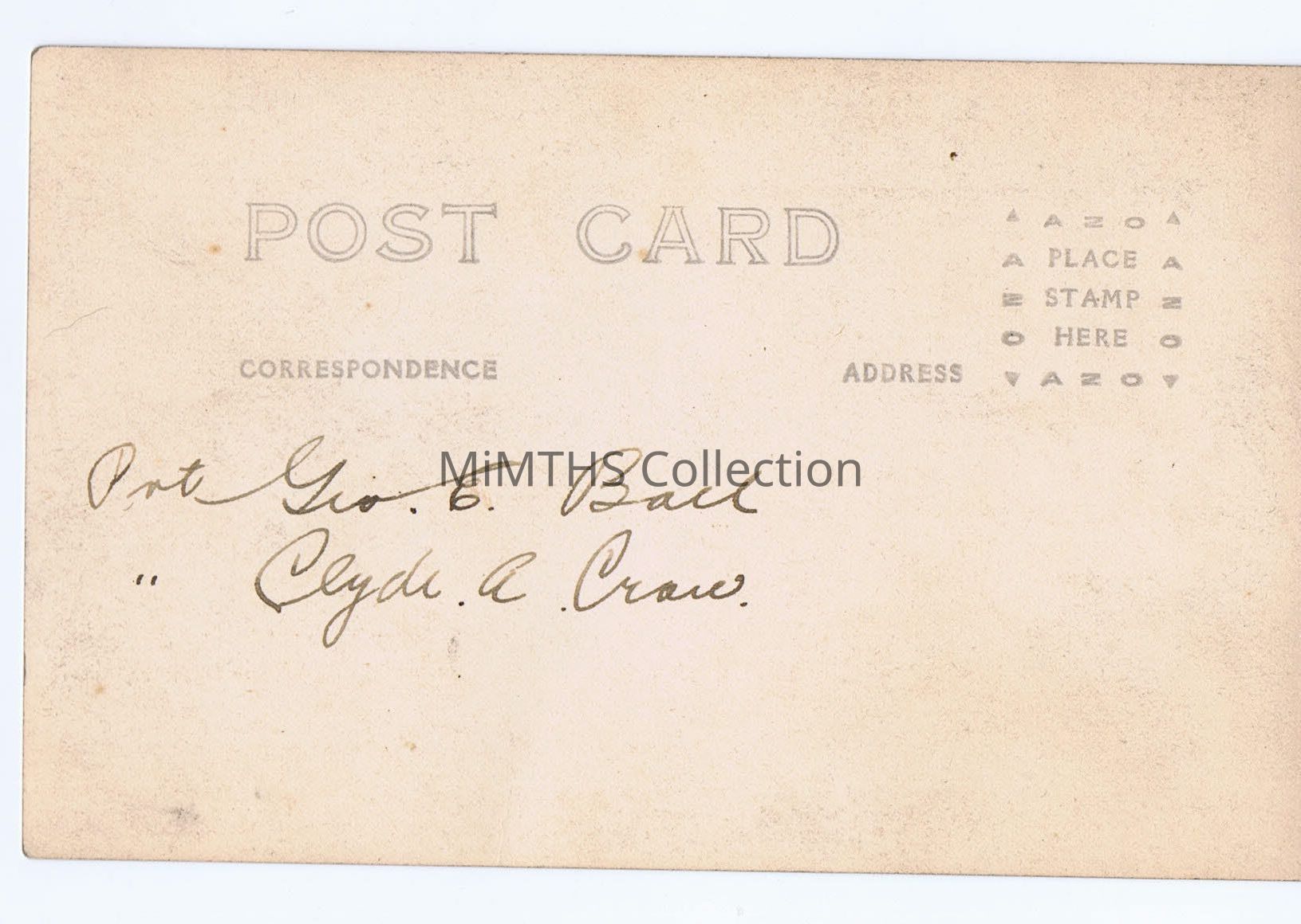 Photo Postcard of two WWI soldiers identified as Pvt. Geo E Bail(?) and Pvt. Clyde A. Craw (?)