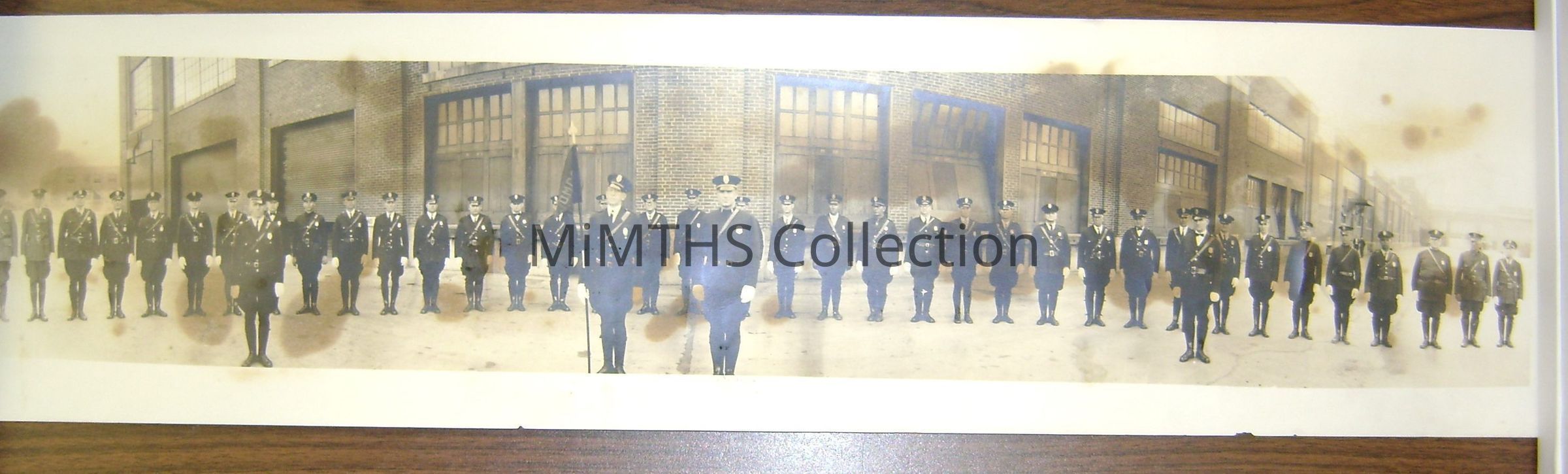 "Yardlong" photo of an unknown plant security unit. Alleged to be from the WWII era. No markings on the building give clues to what it is. The only unusual aspect is that the photo is stamped "Confidential" on the back.Photograph Details