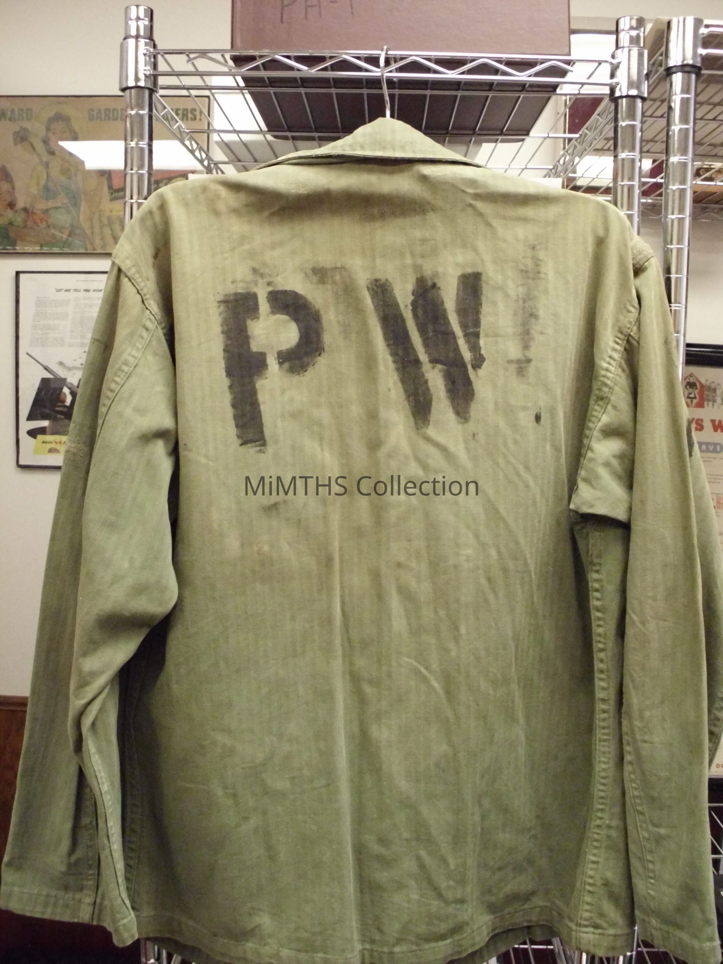 Prisoners of War were allowed to wear their own uniforms while in camp, but were issued US uniforms for wear while out on work detail.