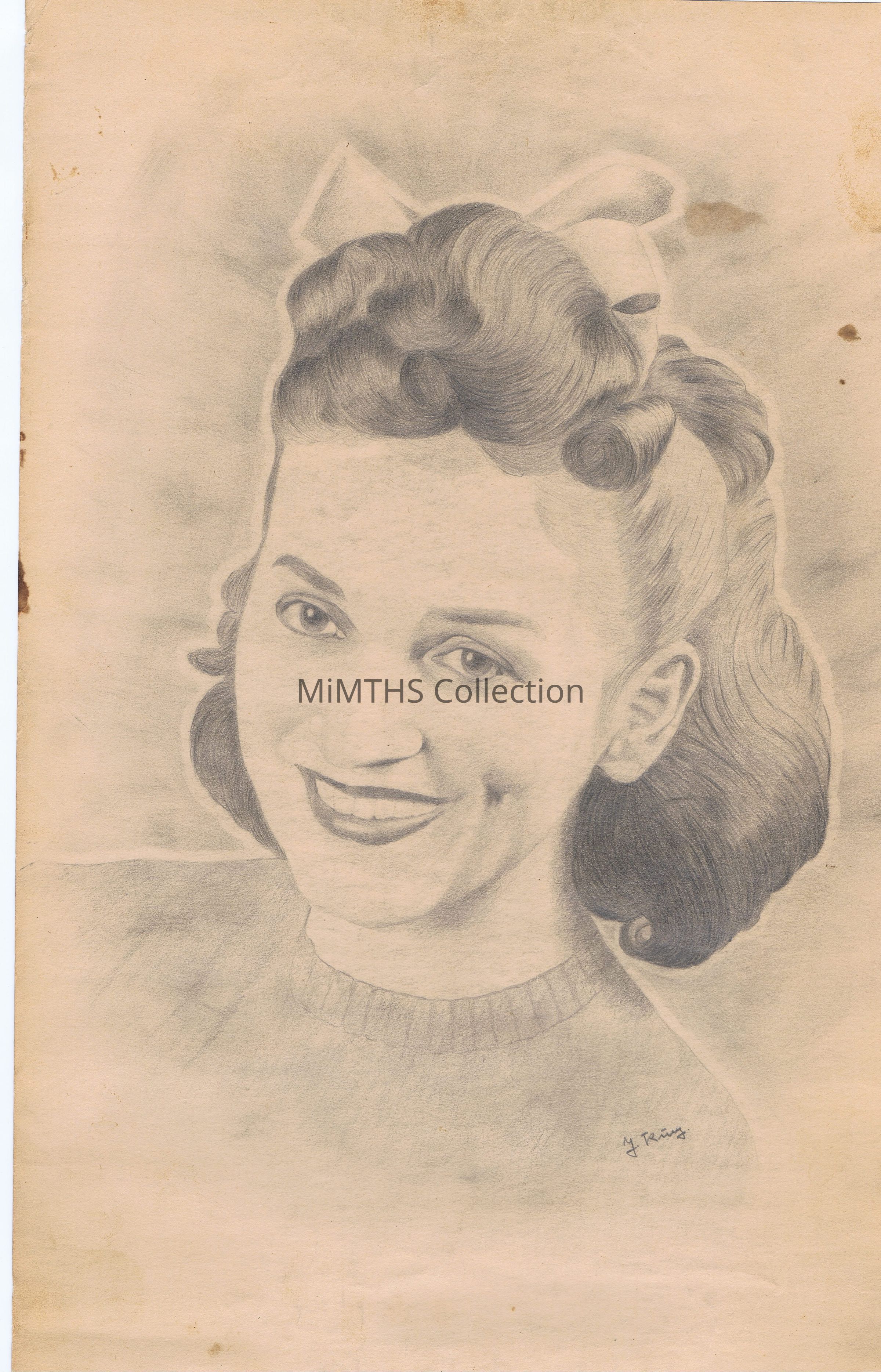 Approx 12"x18" pencil drawing of a girl done by a POW. Signed