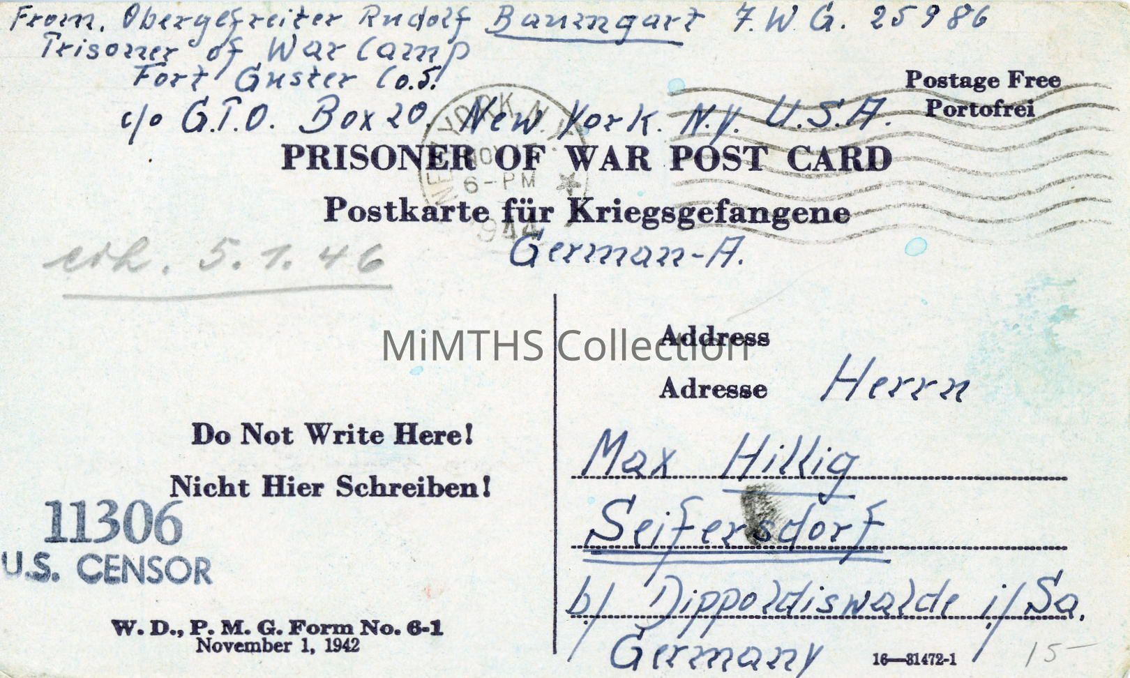 Vor allem sende ich meinem lieben Papa meine herzlichsten Geburtstags Gruesse und hoffe das wir uns recht bald gesund Wiedersehen. Sonst bin ich Gesund ,hoffe von allen lieben das selbe. Macht euch nur keine Sorgen, bald wird der Rudi wieder bei Euch eintreffen . Ich bin ja so Gluecklich , dass ich schon so viel Post von meiner lieben Puthe erhalten habe . Herzliche Gruesse sendet euer lieber RudiLanguage