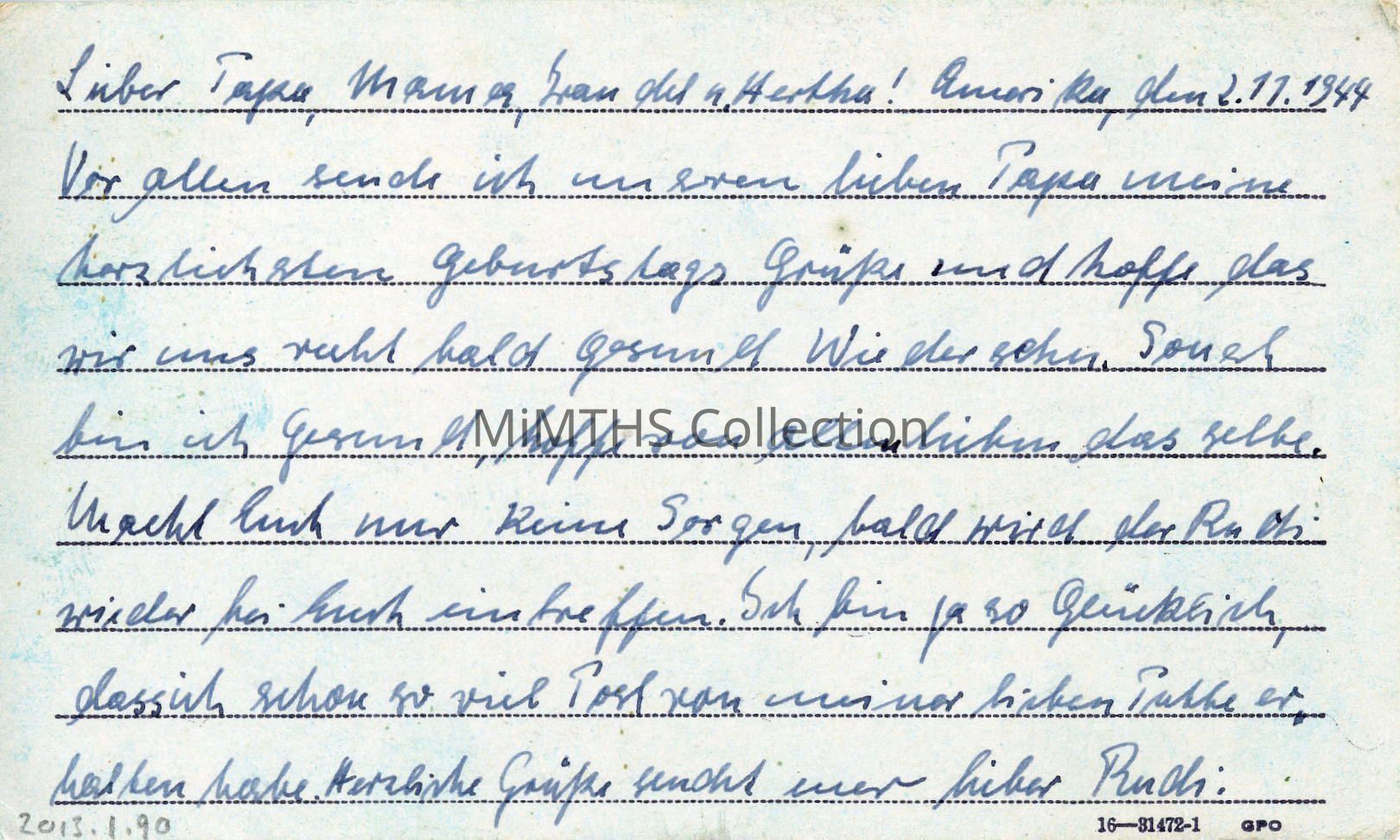 Dear Papa, Mama ,Traudel and Hertha ! America ,the 2.11. 1944