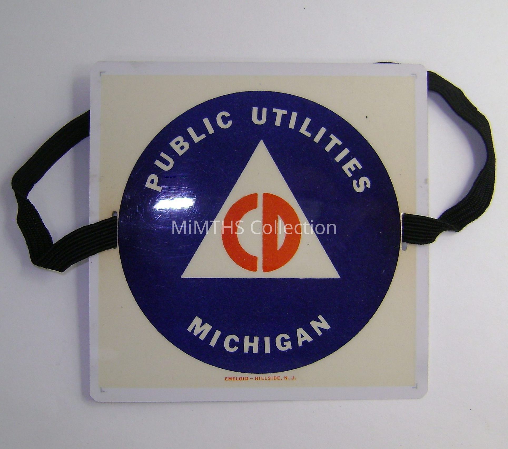 Plastic Civil Defense Brassard that would accompany a window card to identify a member of the Public Utilities branch of the Michigan Civil Defense.