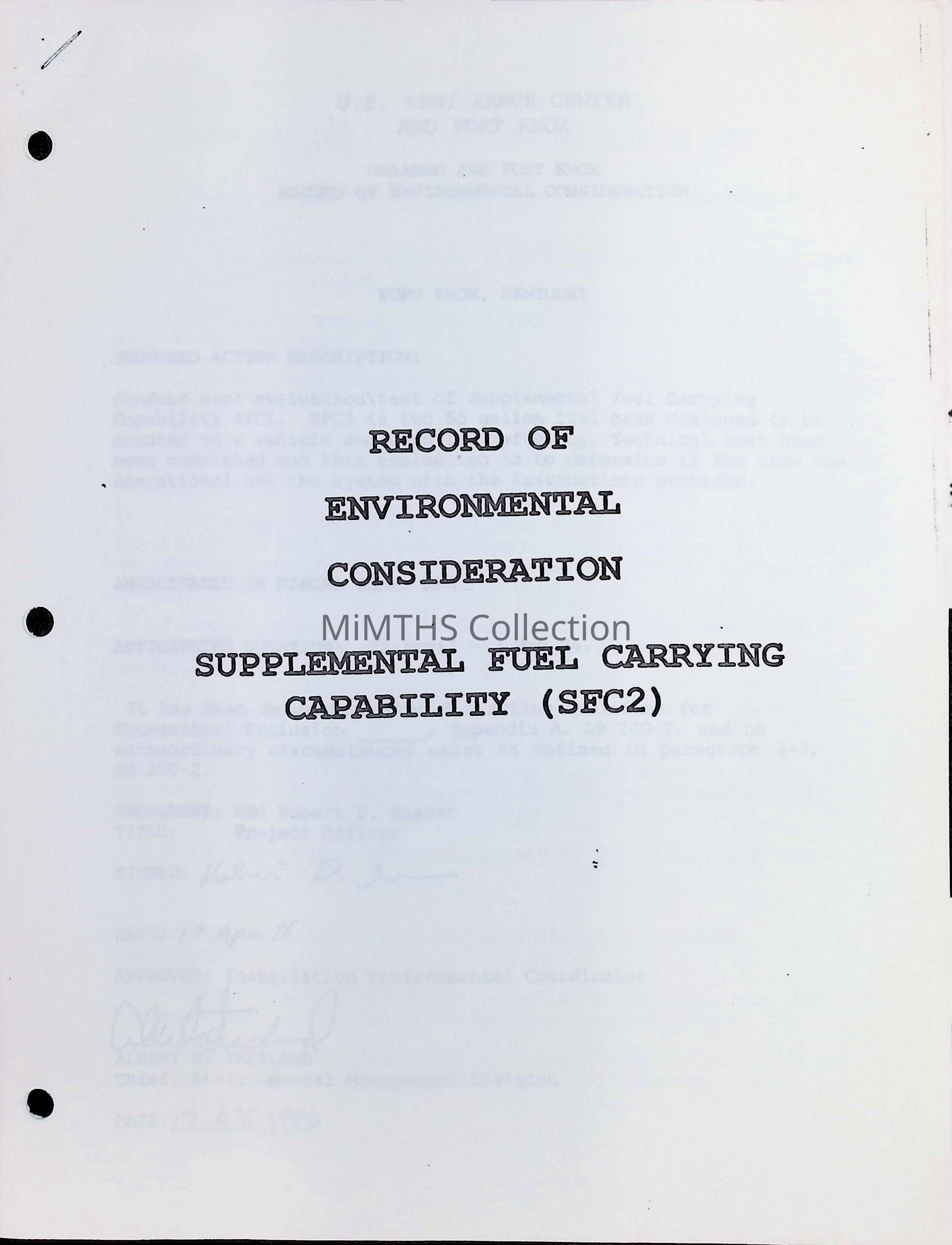Record of Environmental Consideration Supplemental Fuel Carrying Capability (SFC2) M1 Abrams Tank.Cataloged By