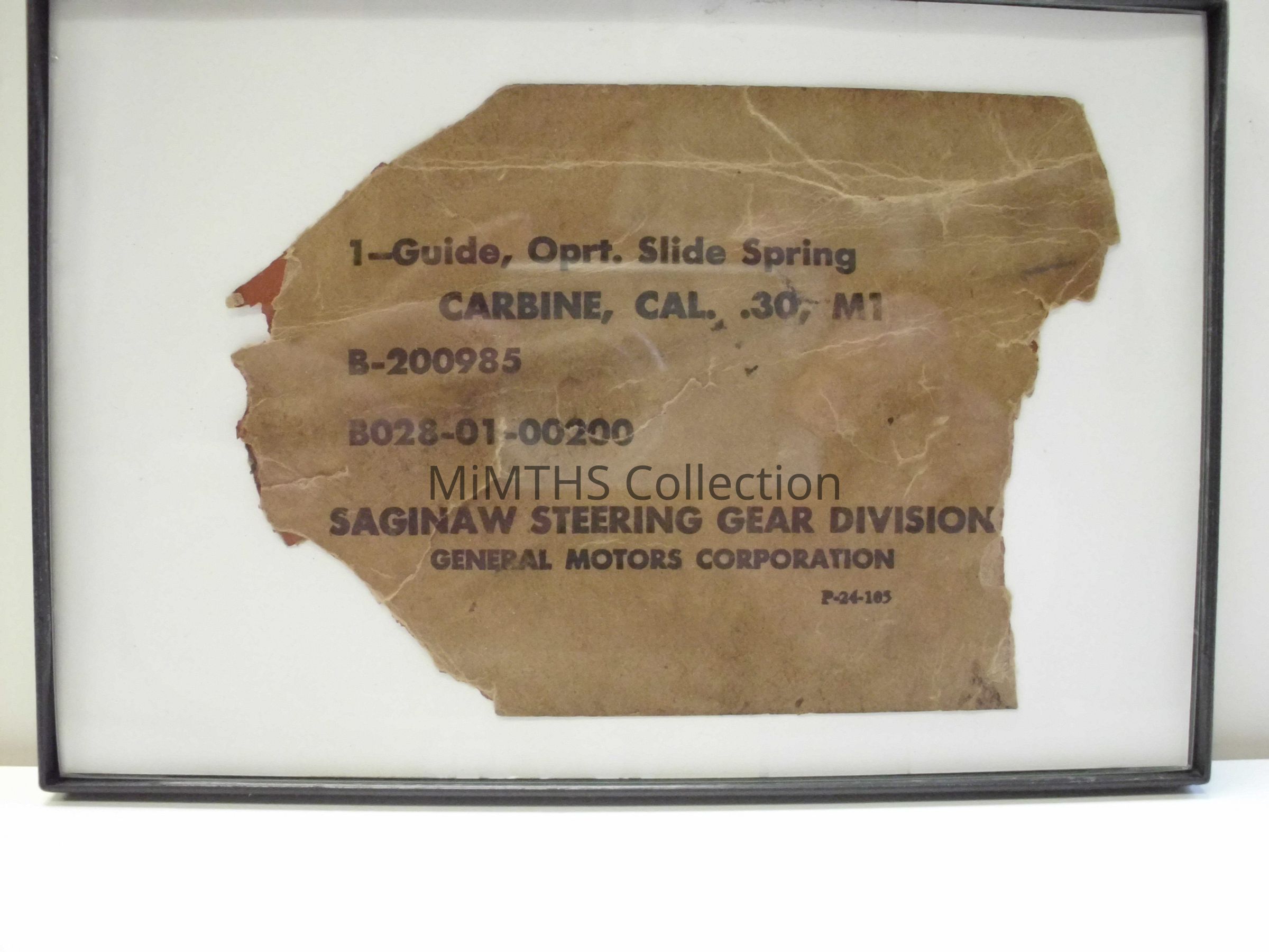 Portion of a Saginaw Steering Gear Wax paper wrapper for a M1 Carbine Guide, Oprt. Slide SpringCataloged By