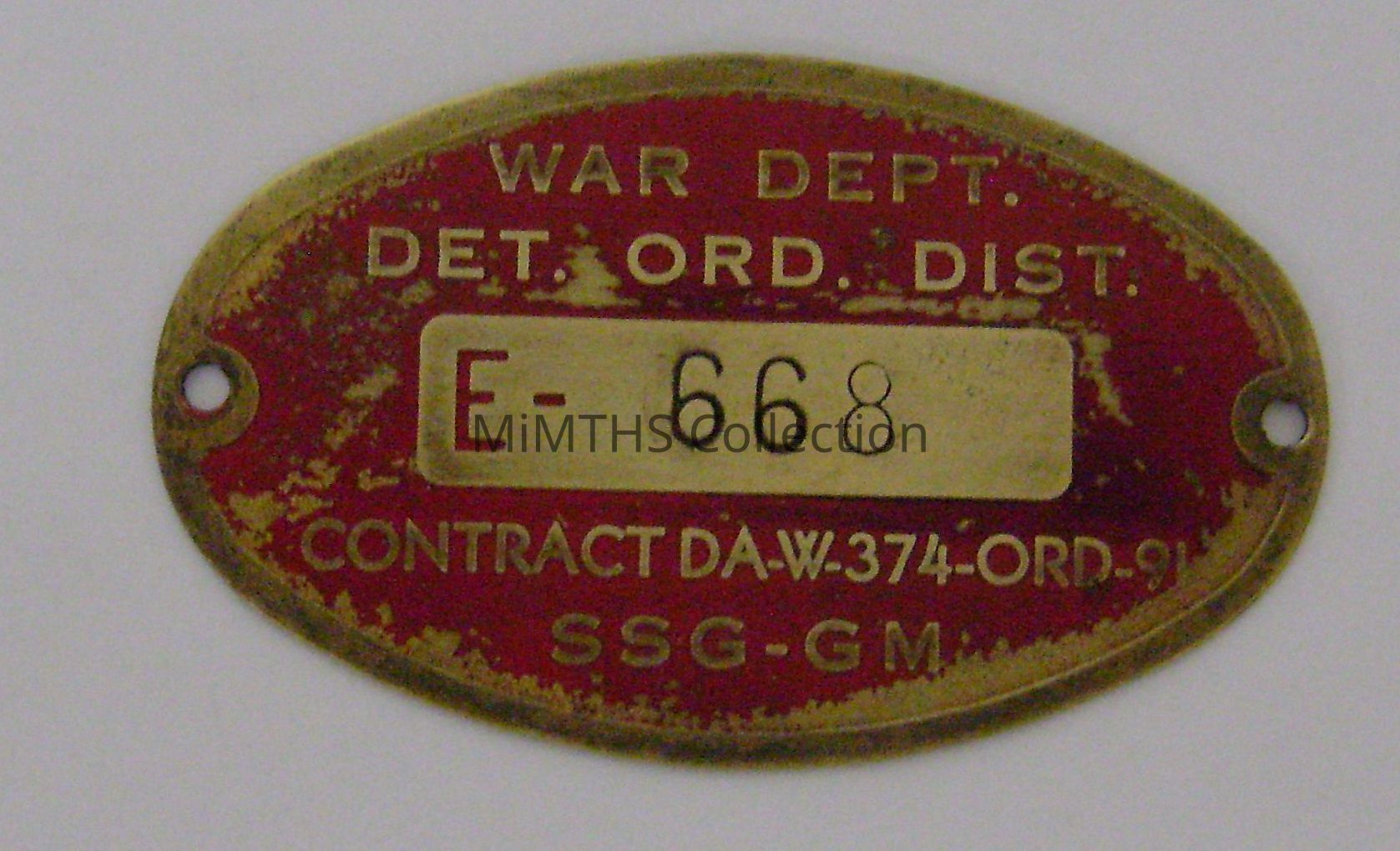 2 1/2 " x 1" brass tool tag fromWar Dept contract DAW-374-ORD-91 SSG - GM