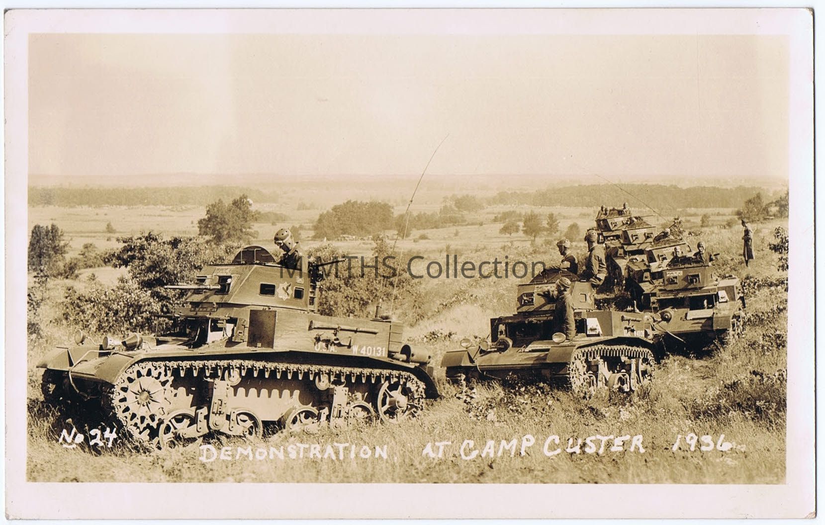 1st Cavalry M1 Combat cars, probaly on the final day of the maneuvers at Harbord Hill, Camp Custer.Cataloged By