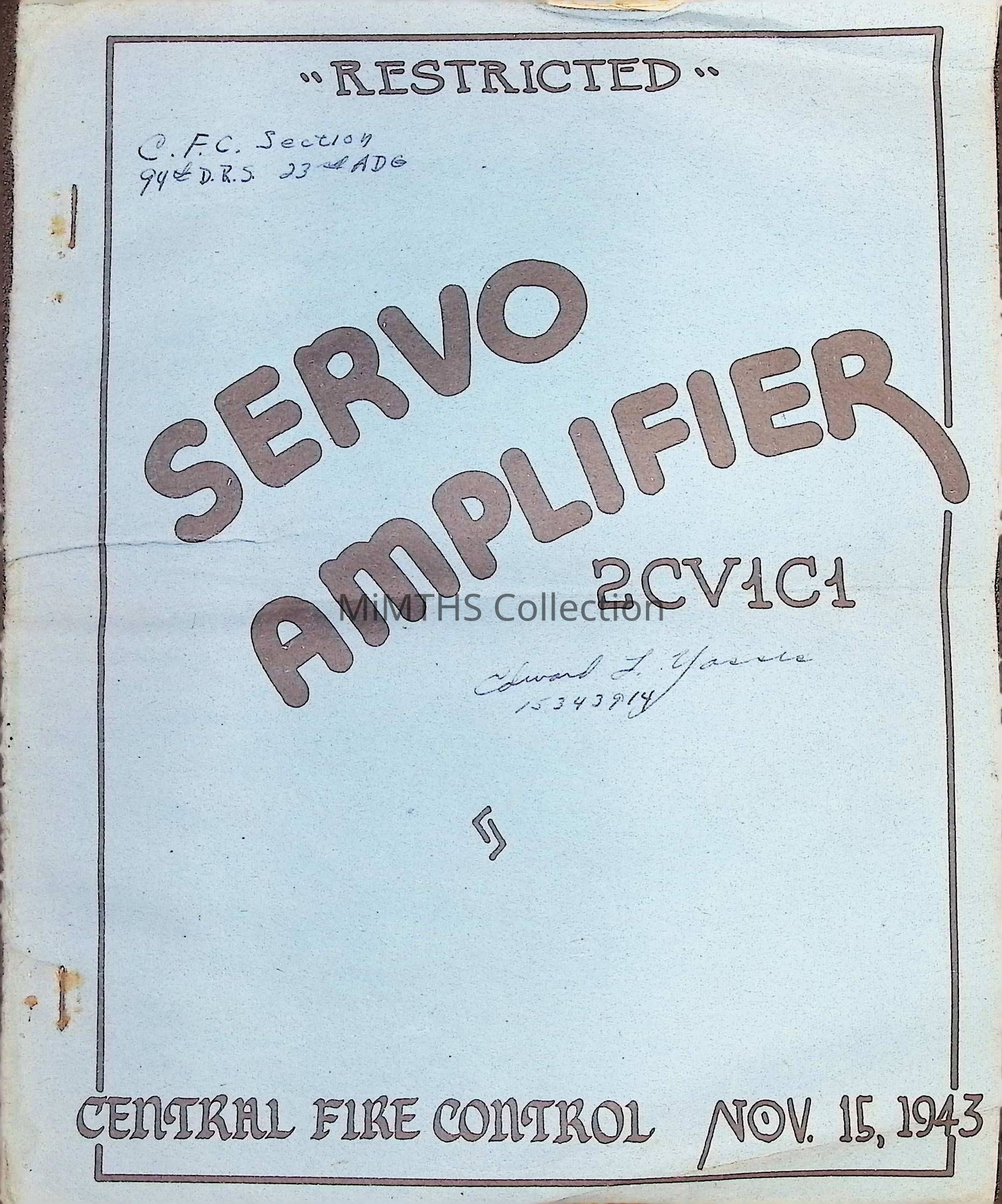 Central Fire Control Servo Amplifier Model 2CV1C1.Cataloged By