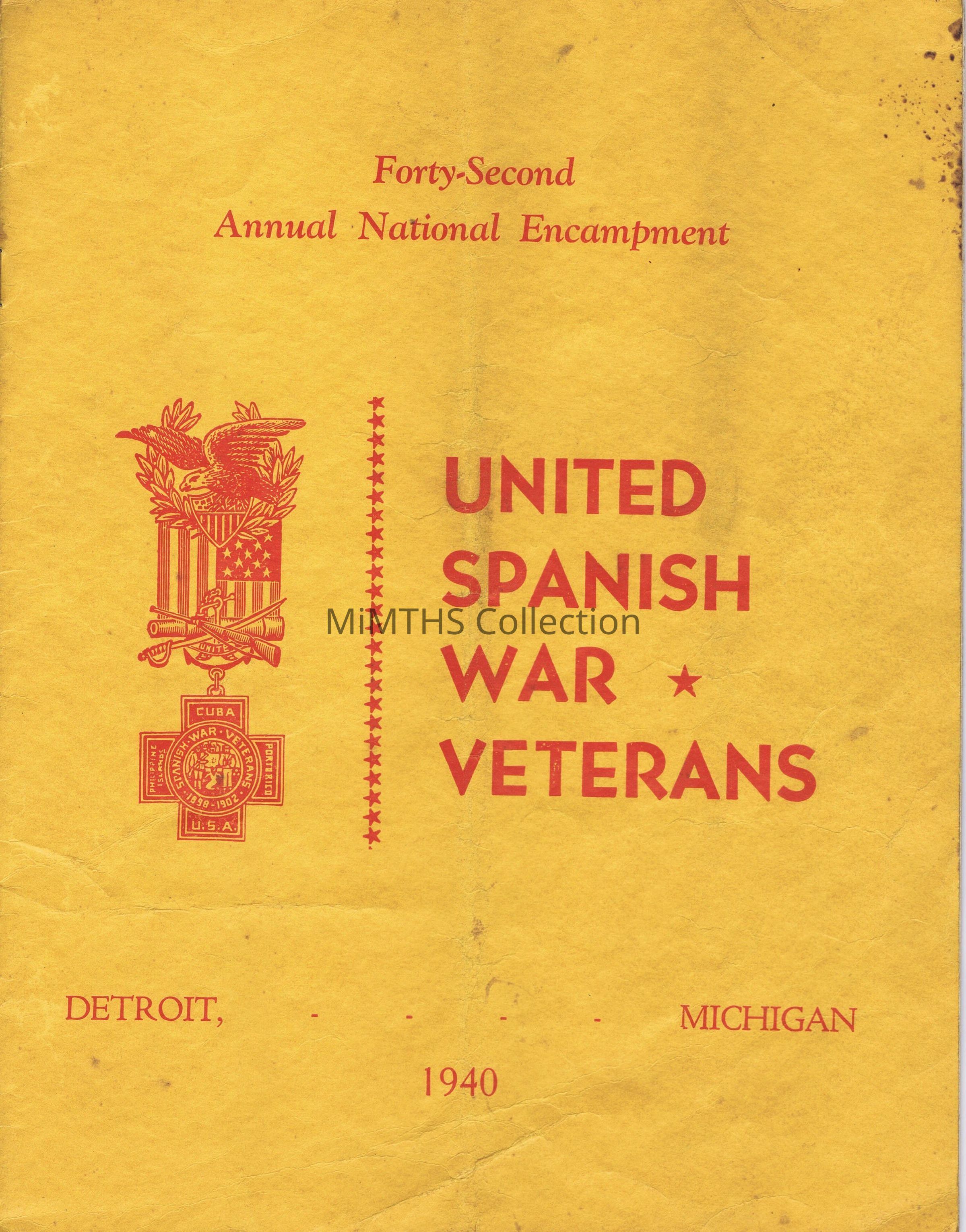 Souvenir Book from the 42nd Spainish American War Veterans Encampment in Detroit, 1940. From William Korte of Grosse Pointe, Span Am vet.Cataloged By