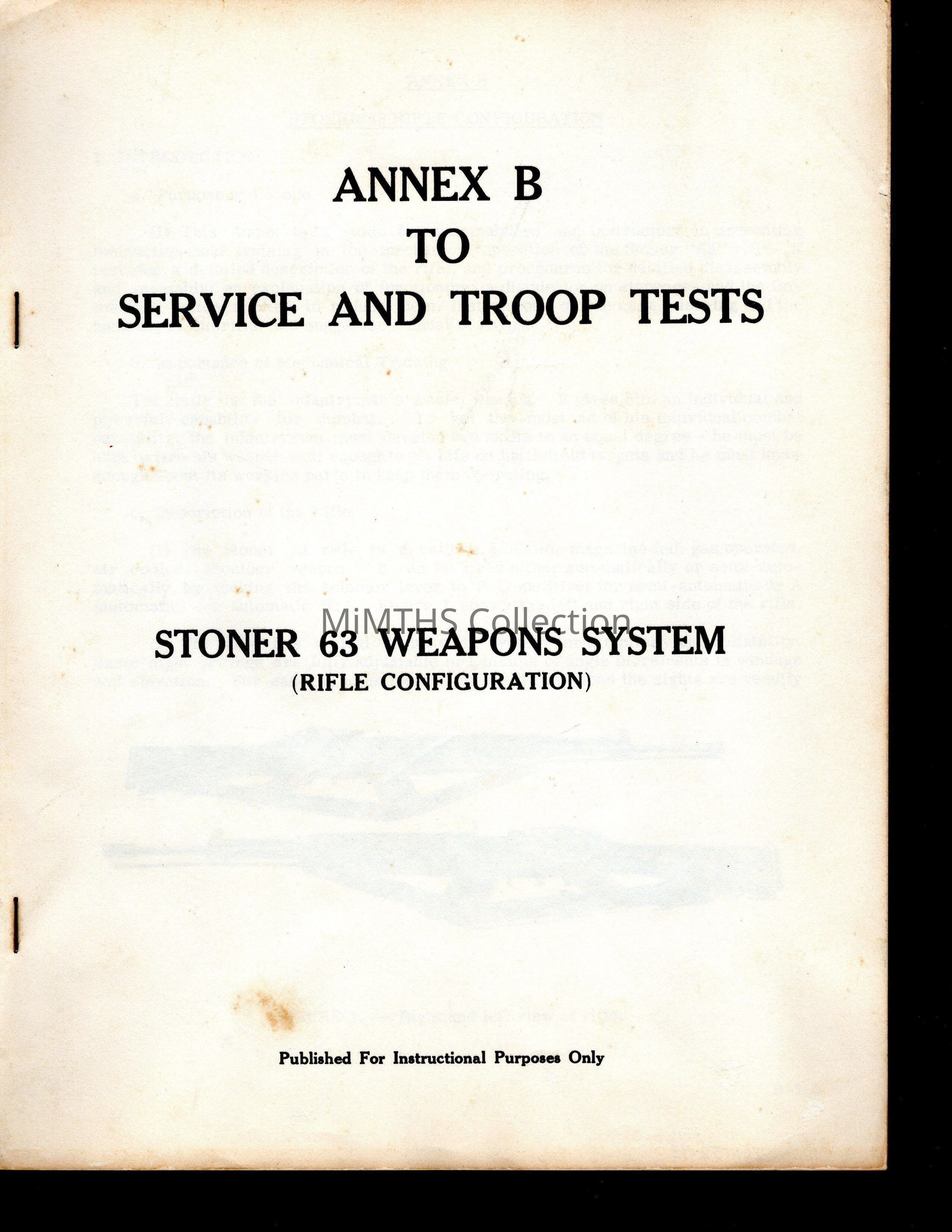 Stoner 63 Weapons System, Annex B to Service and Troop TestsEntry/Object ID