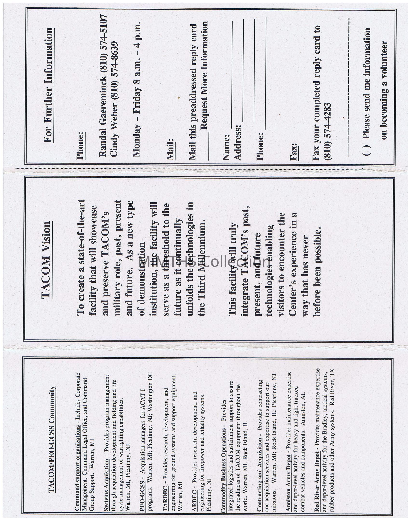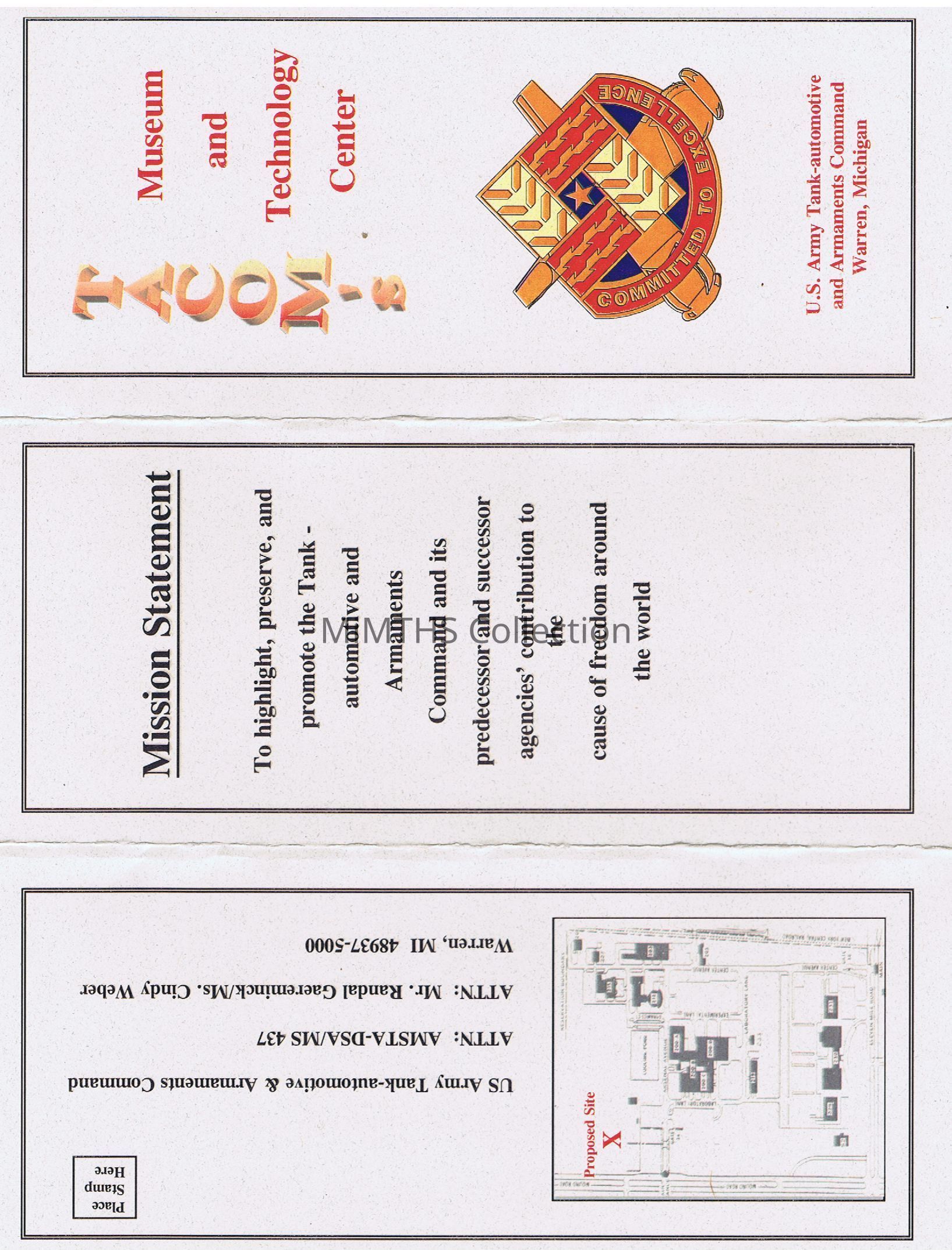 Tri-Fold Brochure about the proposed TACOM Museum and Technology Center. Late 1990's Pre 9/11/01