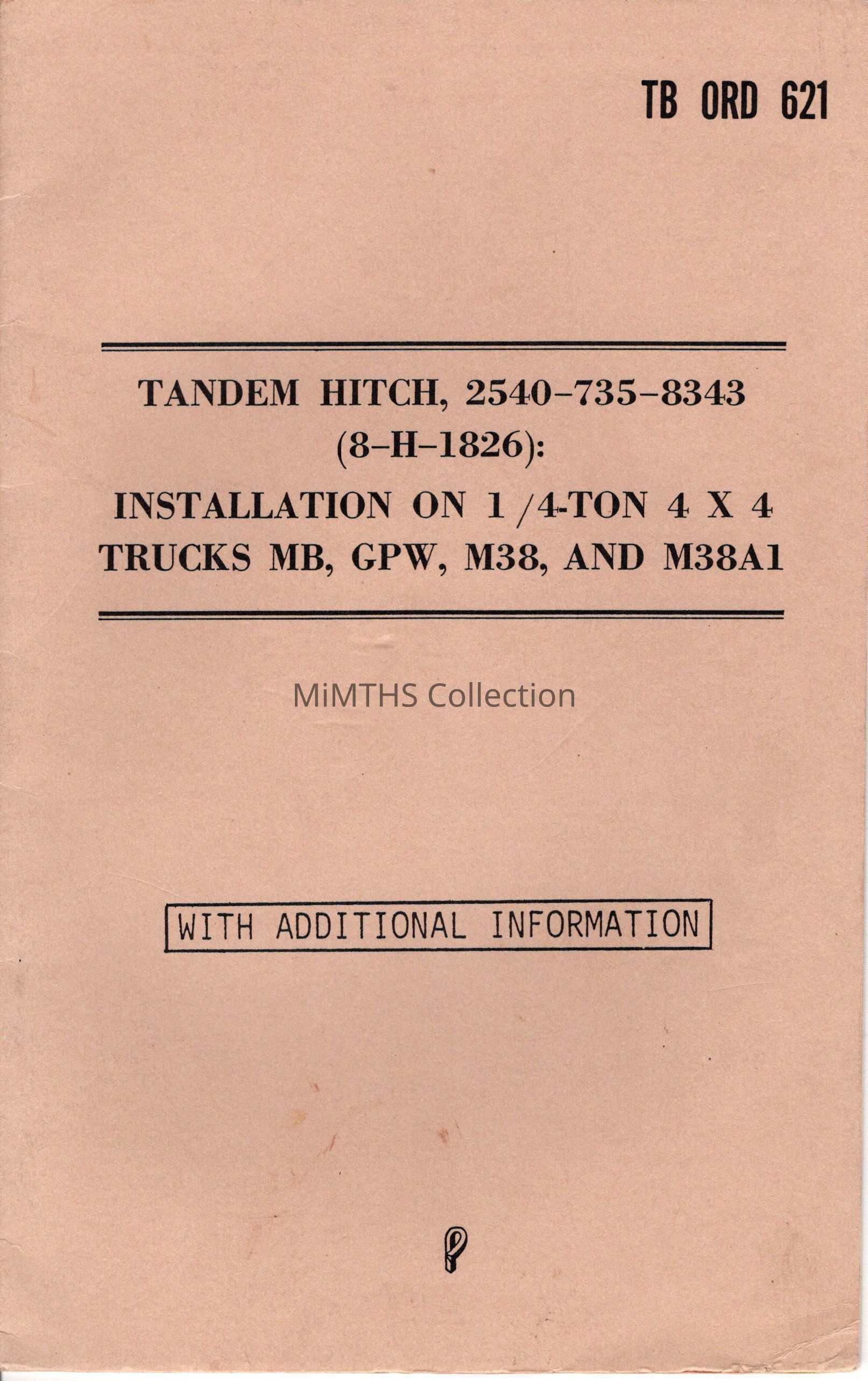 Tandem Hitch 2540-735-8343 (8-H-1826): Installation On 1/4-Ton 4x4 Trucks MB, GPW, M38, and M38A1Cataloged By