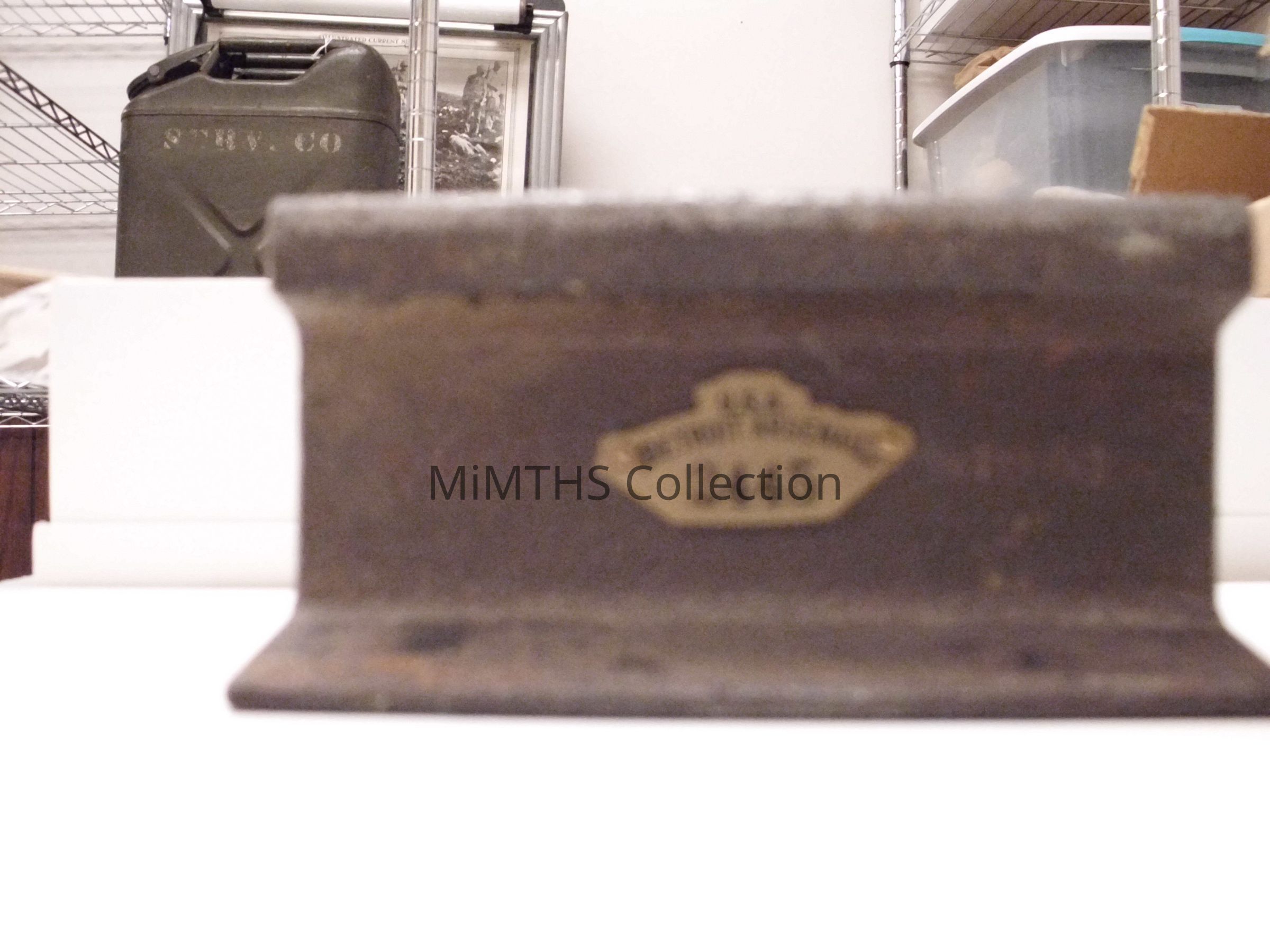 A piece of the assembly line rail from the Detroit Arsenal Tank Plant. A retirement souvenier of plant worker Leonard Treppa.