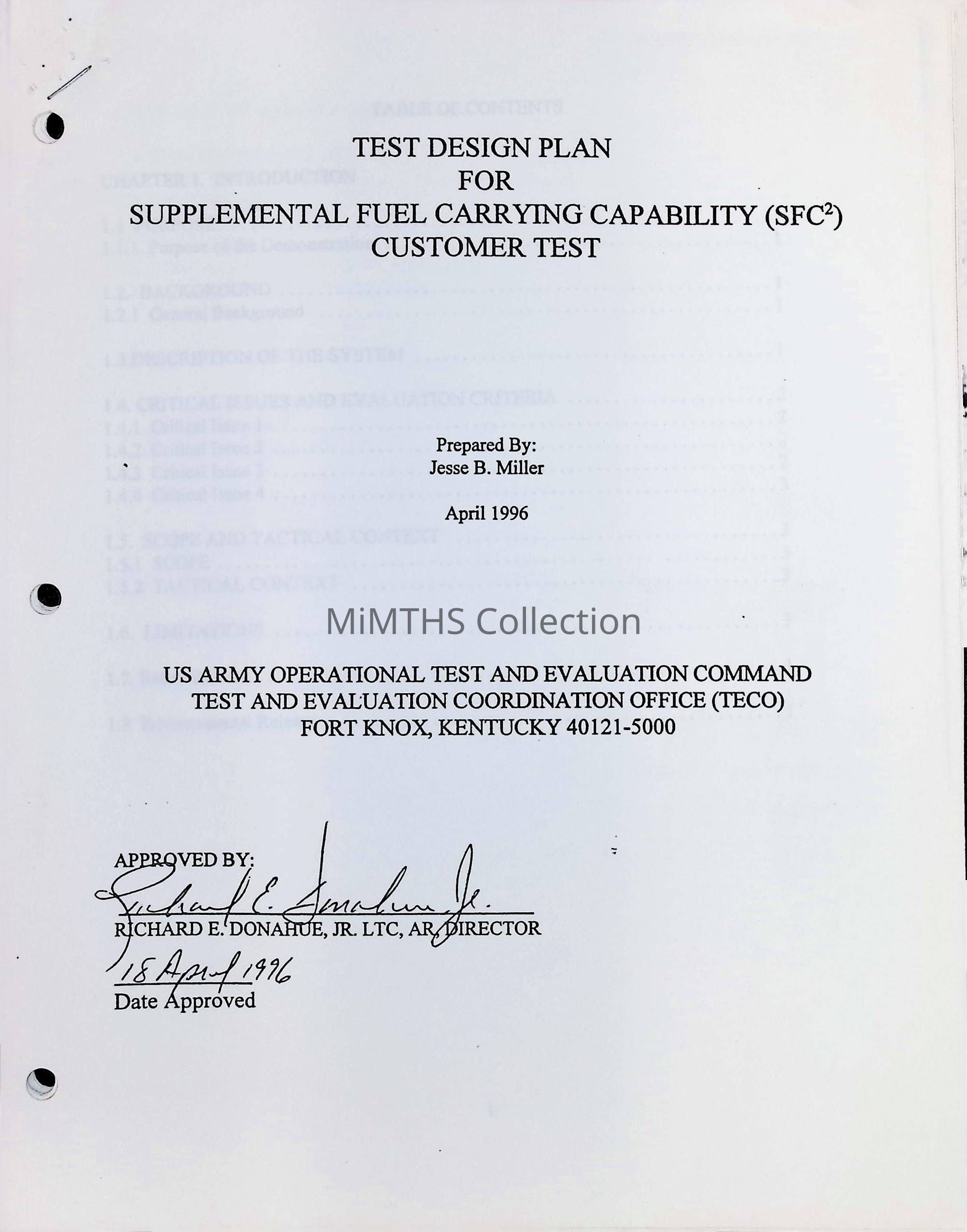 Test design plan for supplemental fuel carrying capability customer testCataloged By