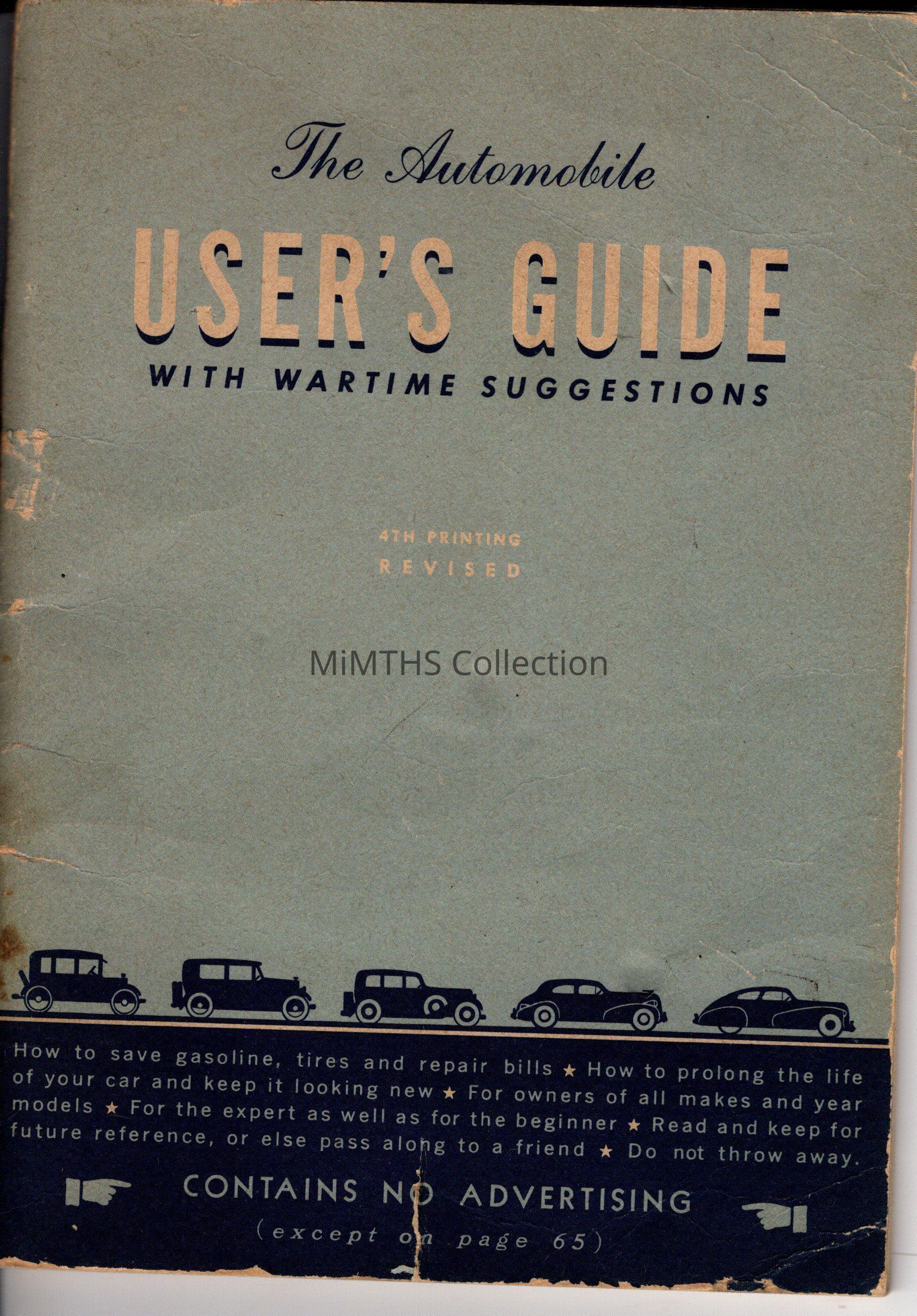 The Automobile Users Guide, with wartime suggestions. Pocket book printed by GM during WWII with ideas on how to make your car last and conserve for the war.