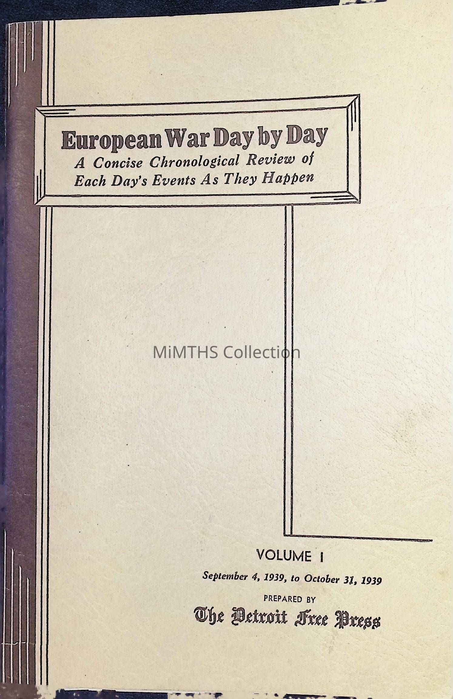 Scrapbook created to contain Detroit Free Press war clipping 9/4/39-10/31/39Cataloged By